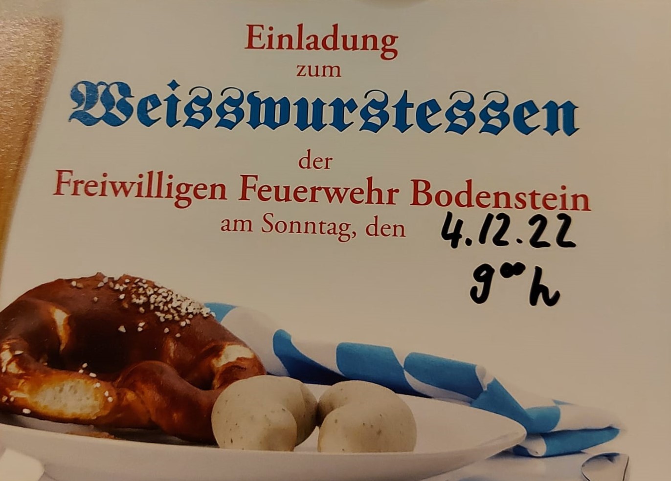 Am 04.12.2022 fand das traditionelle Weisswurstfrühstück im Spritzenhaus der Feuerwehr Bodenstein statt ...