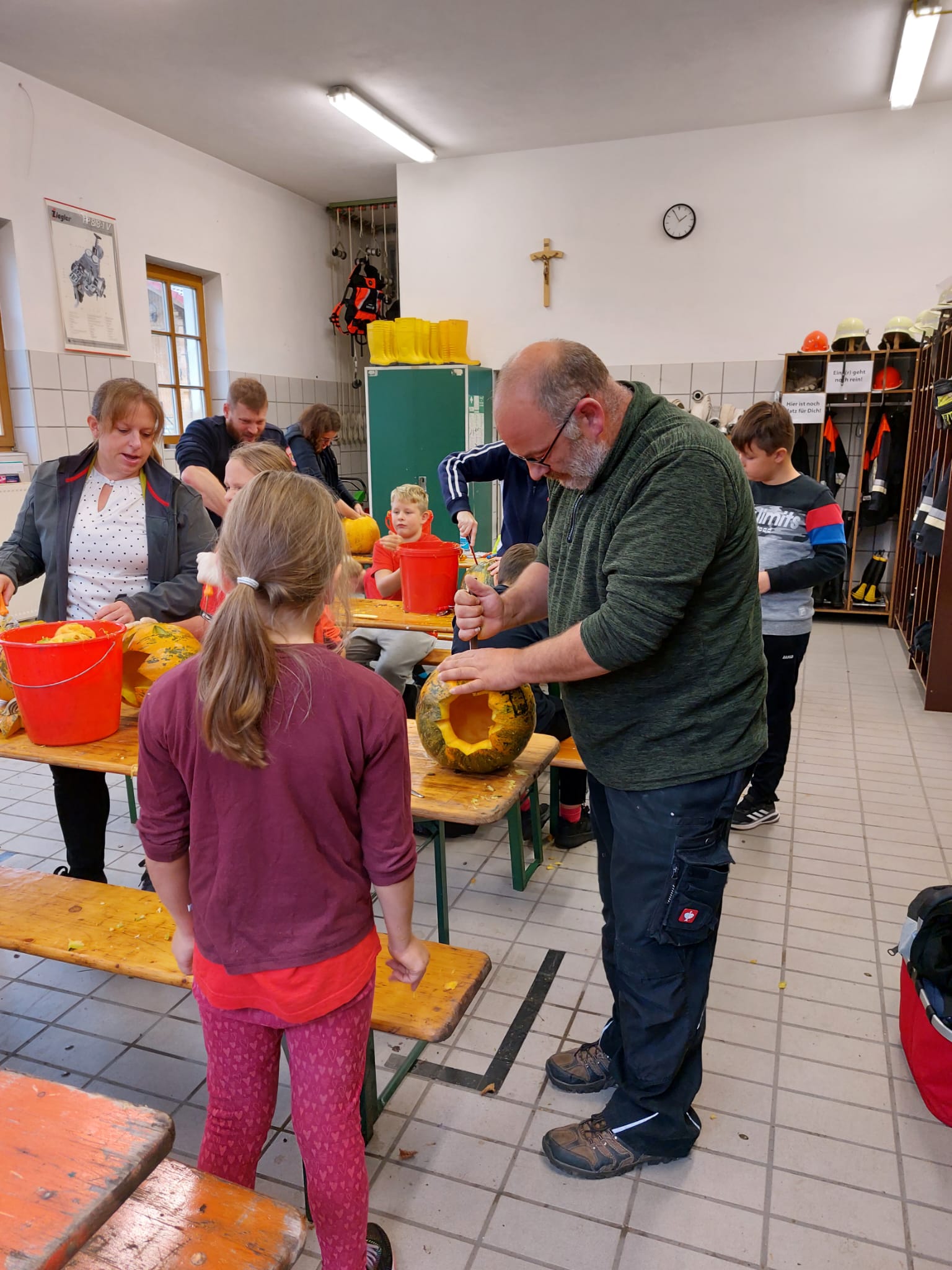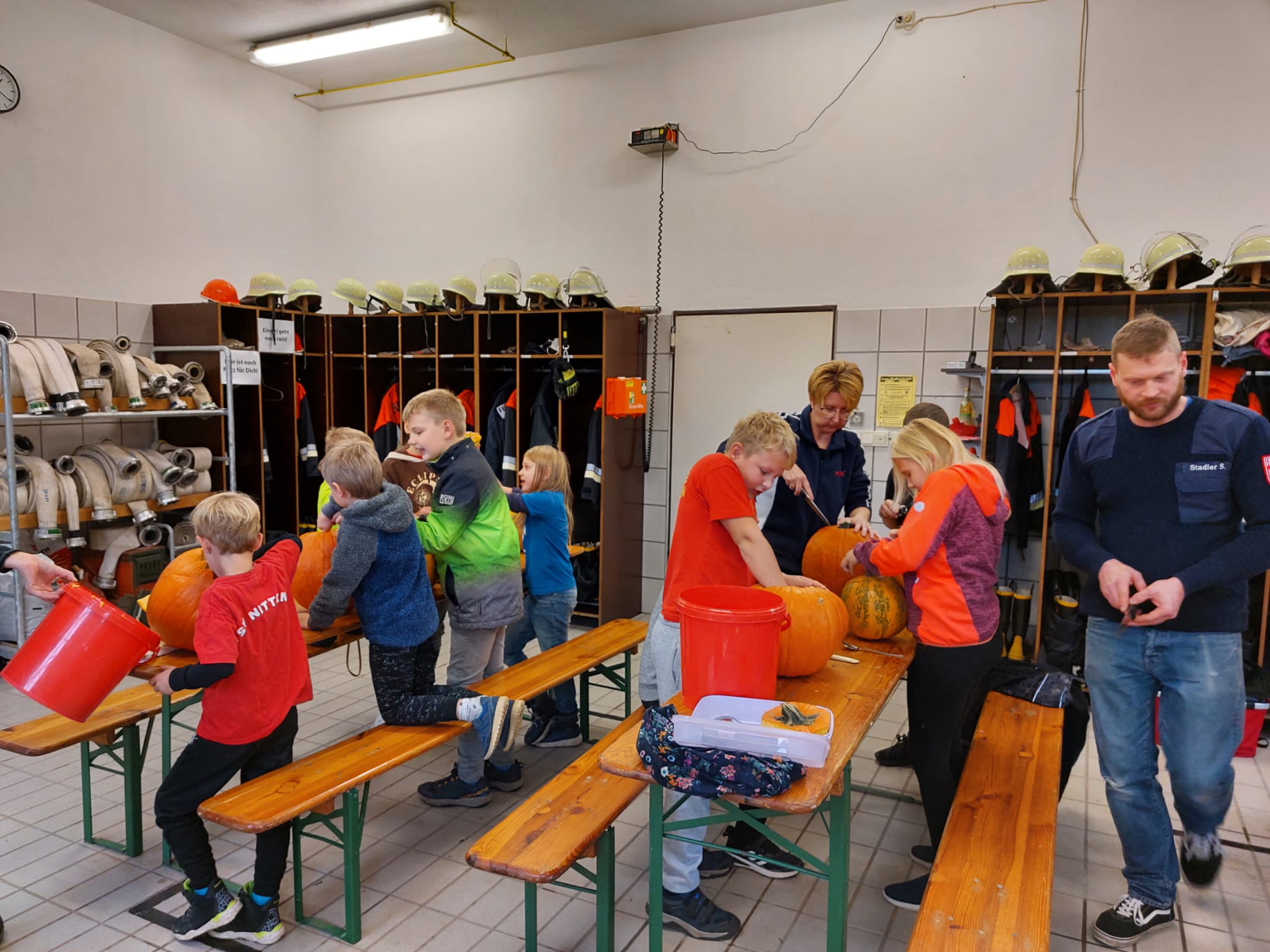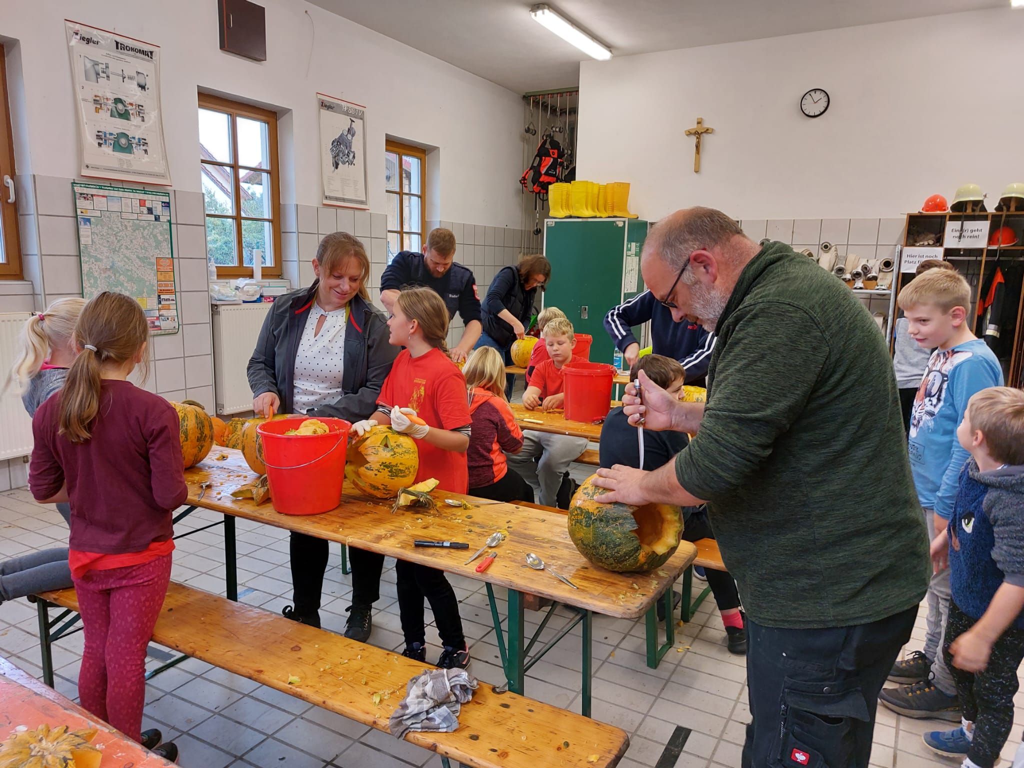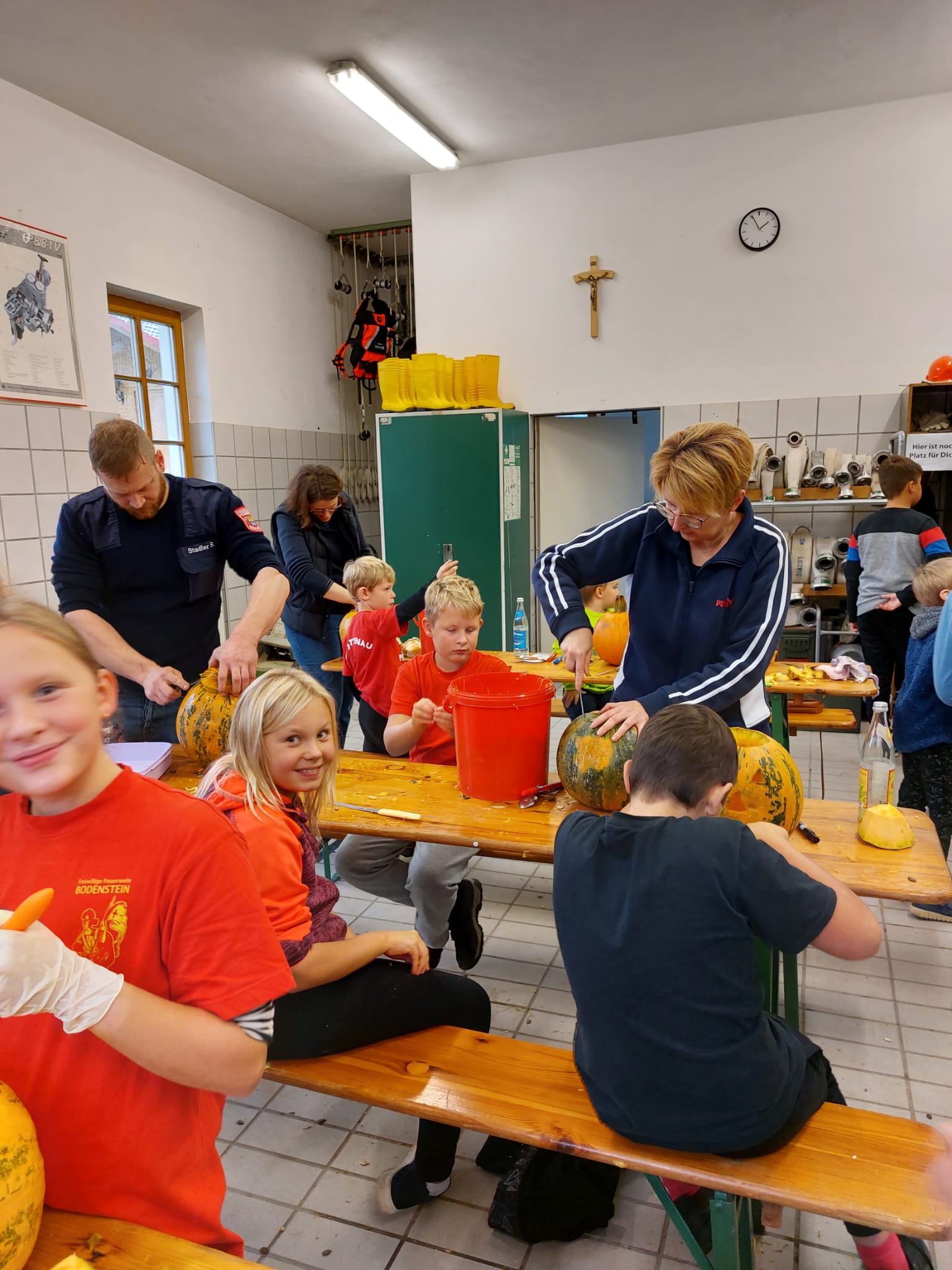 Weil es im letzten Jahr bei den Kindern (und auch bei den Erwachsenen) super angekommen ist und im Oktober natürlich thematisch perfekt passt, wurden auch dieses Jahr bei der Kinderfeuerwehr wieder Kürbisse geschnitzt. Auch dieses Jahr kamen wieder die wildesten und gruseligsten Motive dabei heraus. Im Anschluss an die handwerkliche Tätigkeit gab es zur Stärkung für alle Beteiligten Wiener mit Semmeln. Die gemeinsame Zeit im Aufenthaltsraum des Spritzenhauses wurde so dann auch gleich genutzt um mit Fragen für das Kinderflämmchen das Wissen rund um die Feuerwehr zu erweitern bzw. zu festigen und die wieder einmal gelungen Aktion gemütlich ausklingen zu lassen.