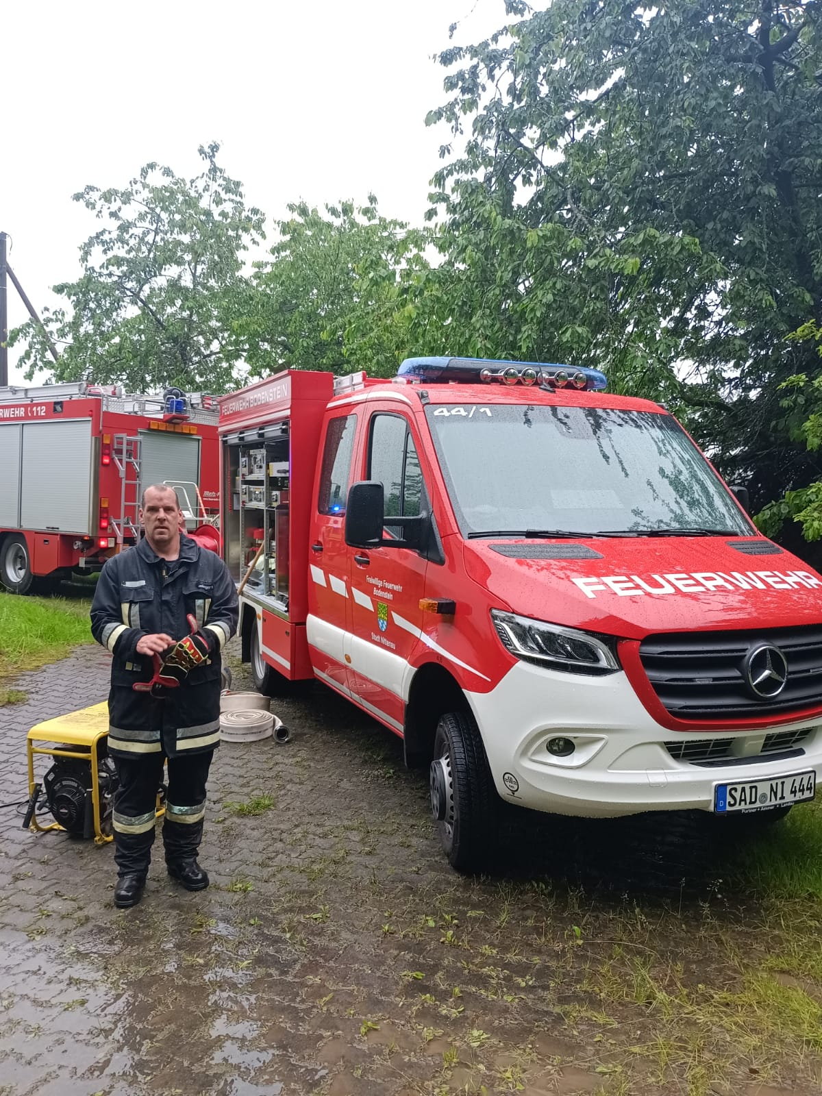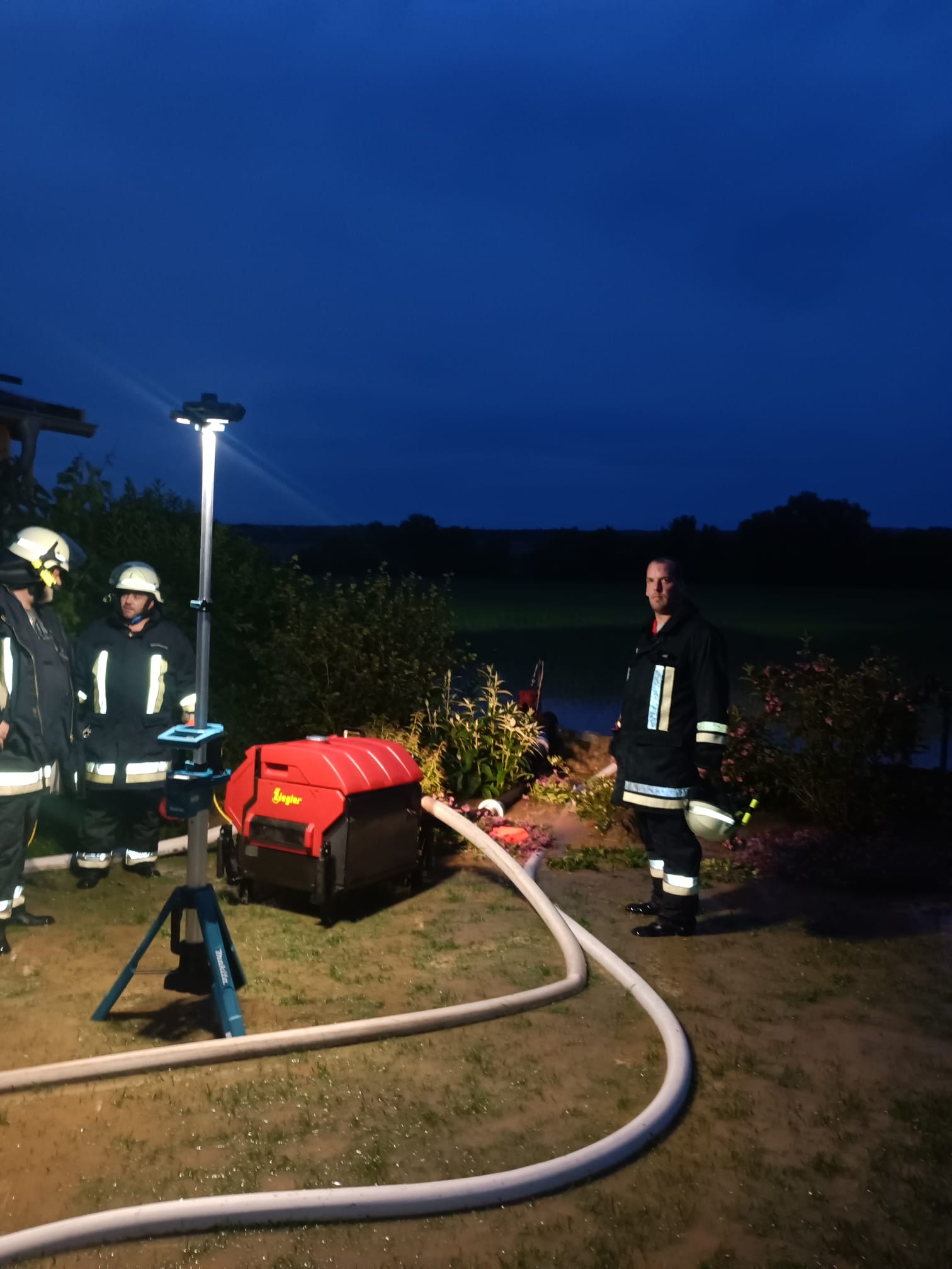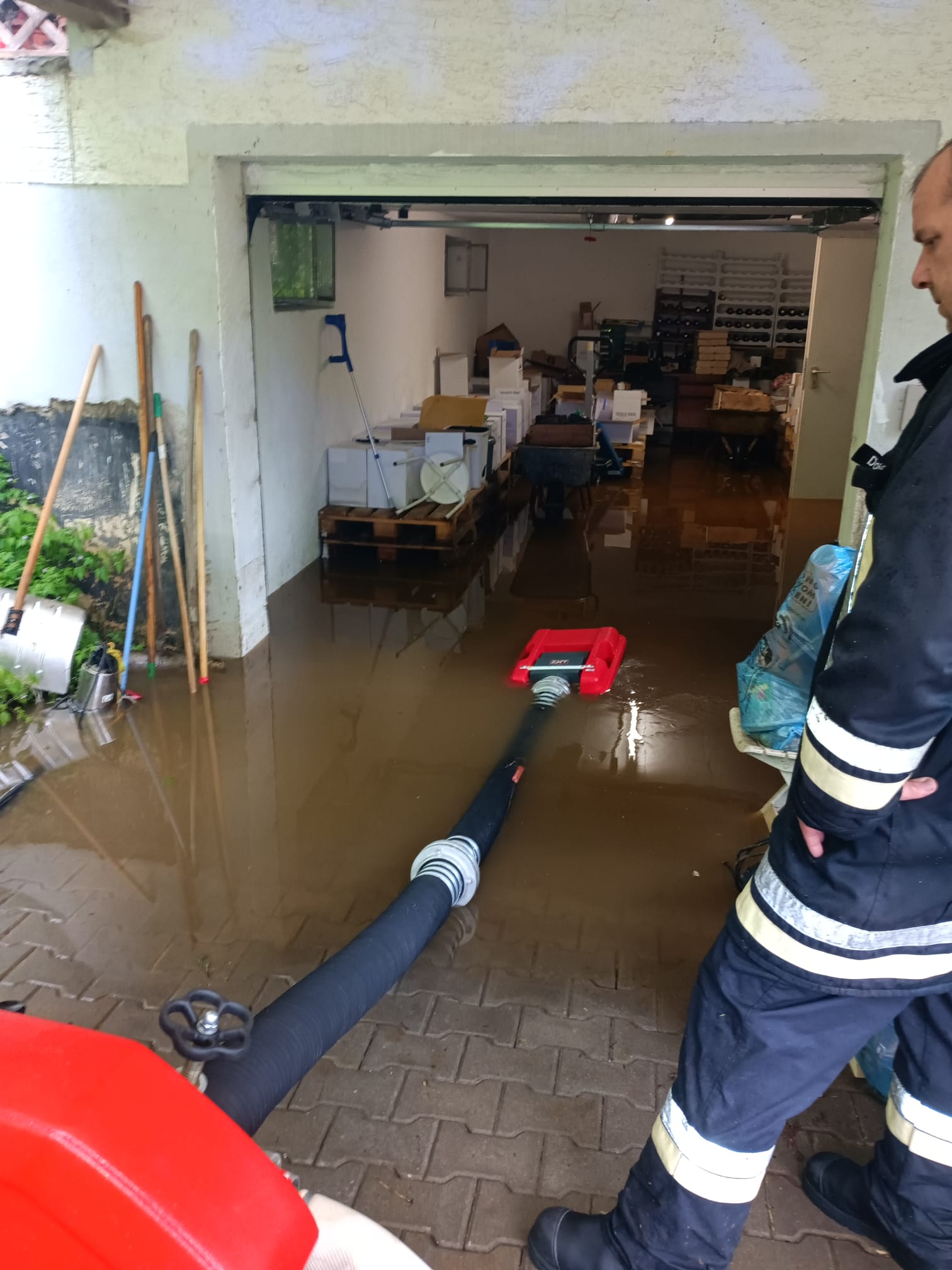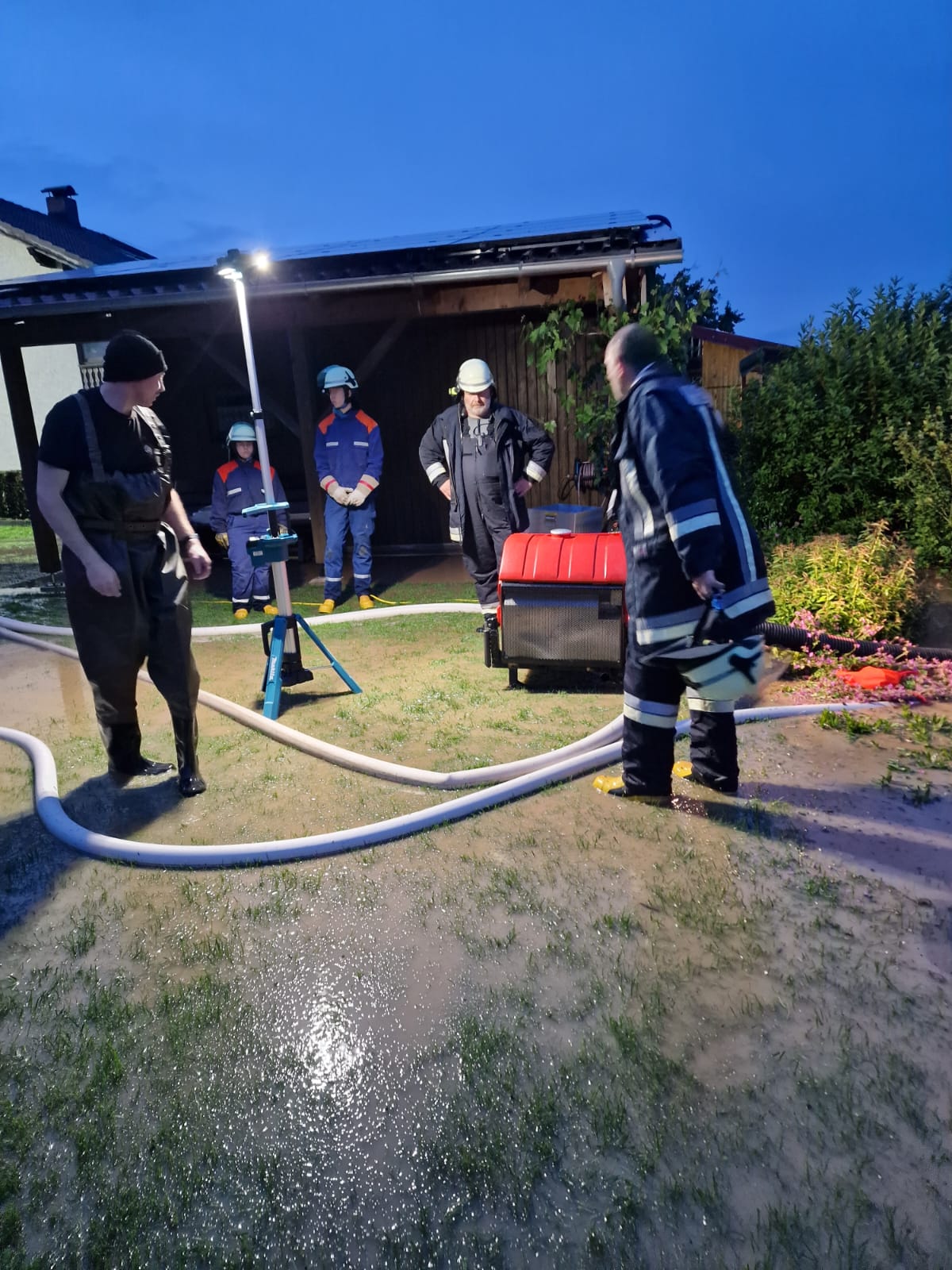 Die erste Alarmierung erfolgt aufgrund von Wasser im Keller in einem Anwesen in Asang. Dort angekommen wurde der Keller mit den Kameraden der Freiwilligen Feuerwehr Wald zusammen abgepumpt und ein Wassergraben errichtet, um den weiteren Regen am Haus vorbeizuleiten.