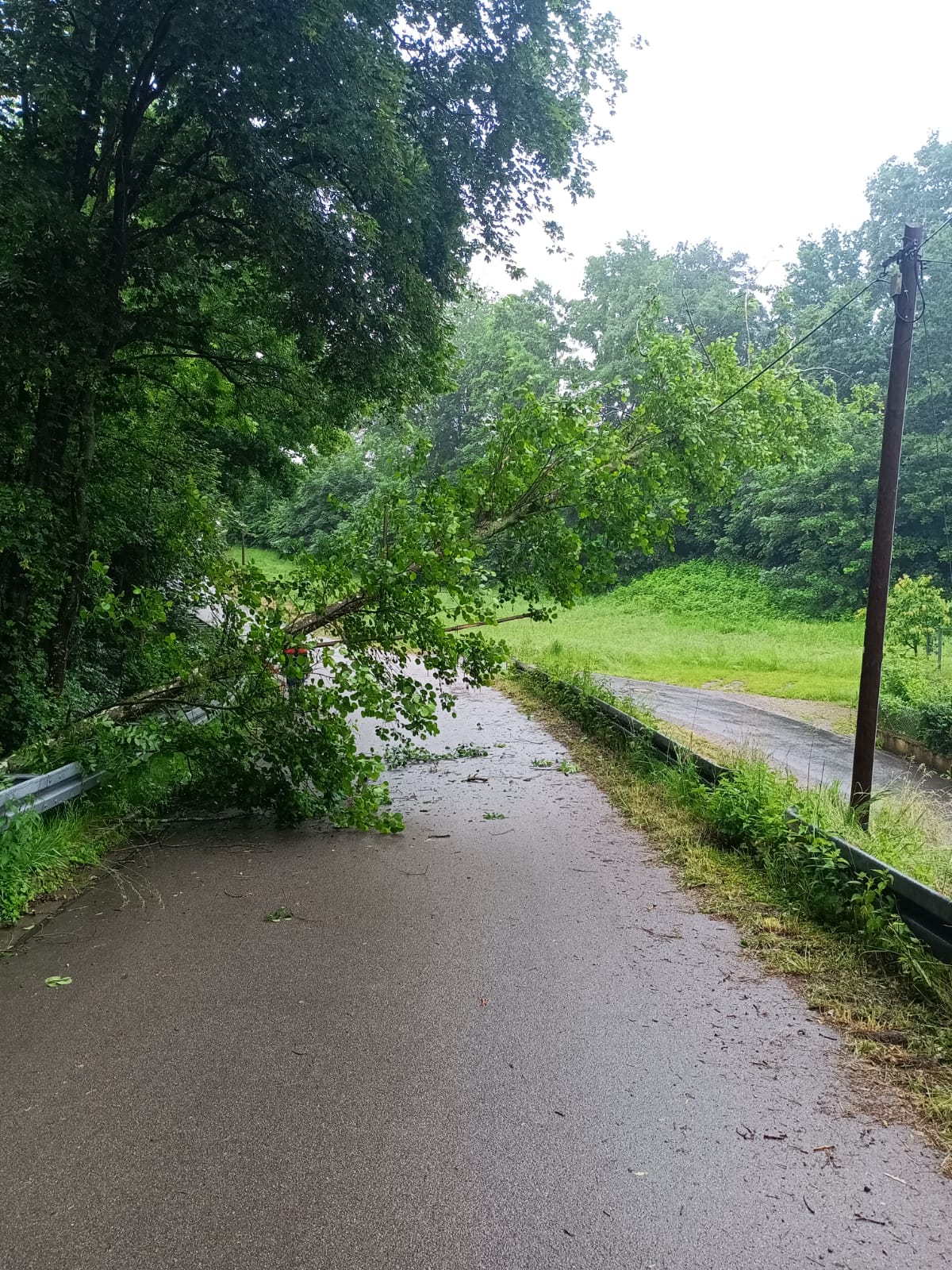 Der Weg führte anschließend allerdings nicht zurück zum Spritzenhaus sondern direkt Richtung Michelsberg. Zwischen Bodenstein und Michelsberg war ein Baum entwurzelt und lag auf einer Telefonleitung auf. Nachdem dieser zerteilt und bei Seite geräumt wurde, konnte die Straße wieder freigegeben werden.