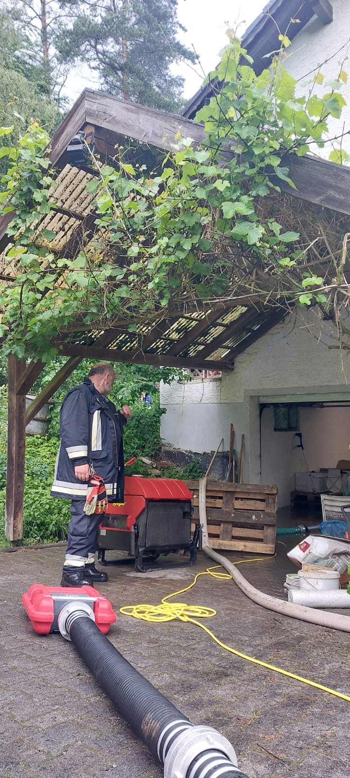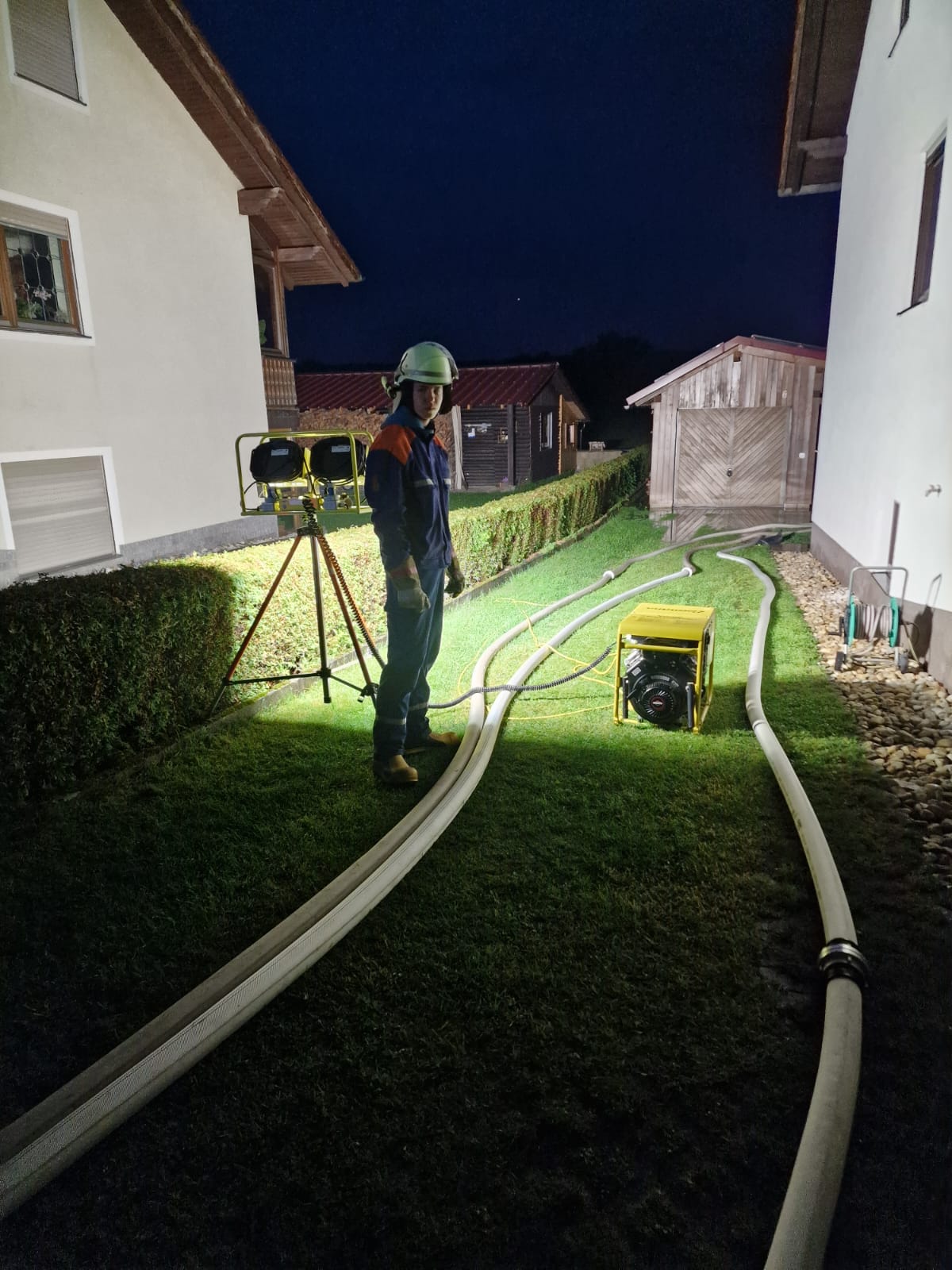 Im Verlauf das Tages musste das Anwesen in Asang ein weiteres Mal angefahren werden, um Wasser aus dem Keller zu pumpen. Der Keller wurde nun auch möglichst Hochwasserfest verriegelt, um dem anhaltenden Regen standzuhalten.