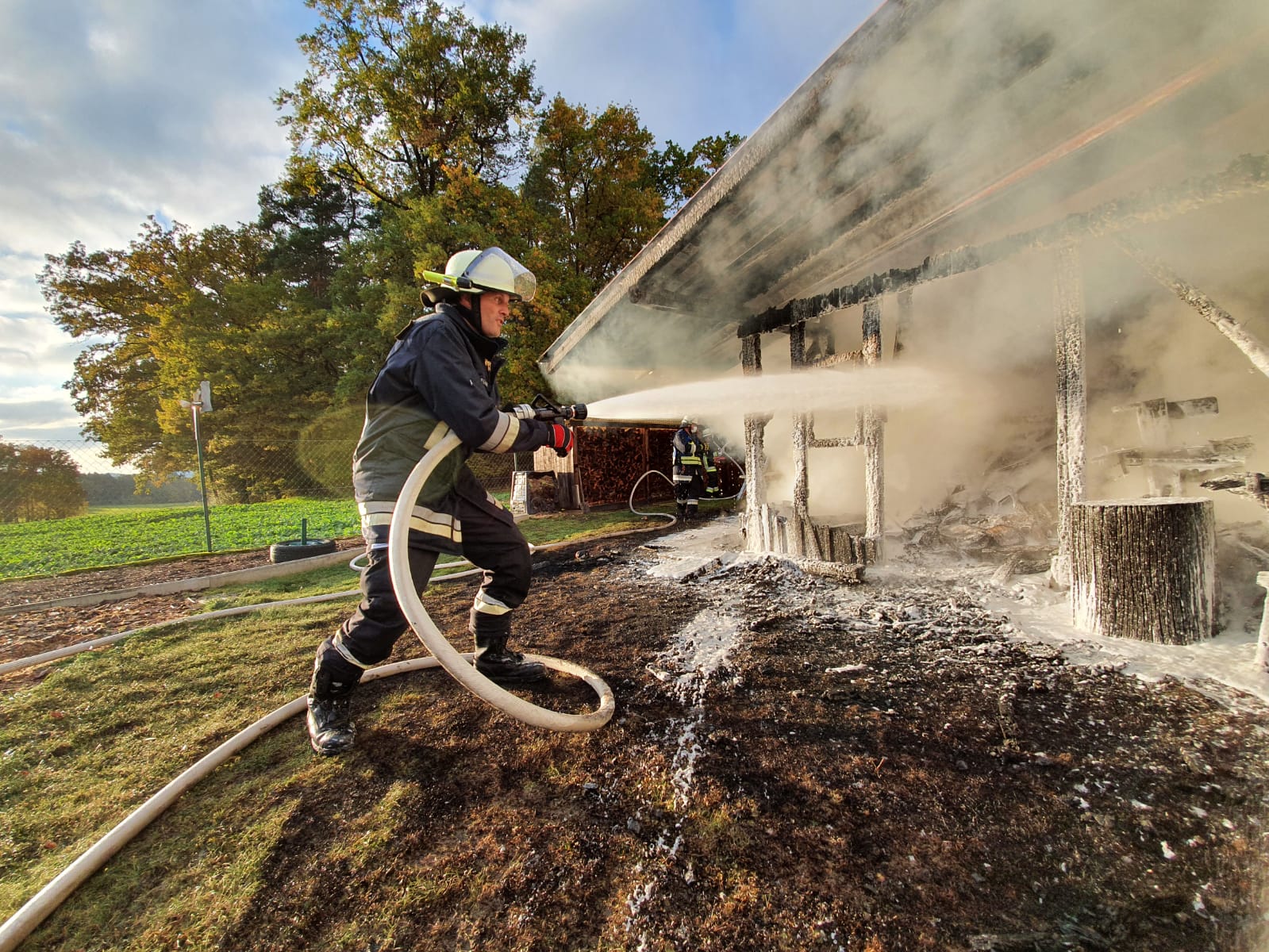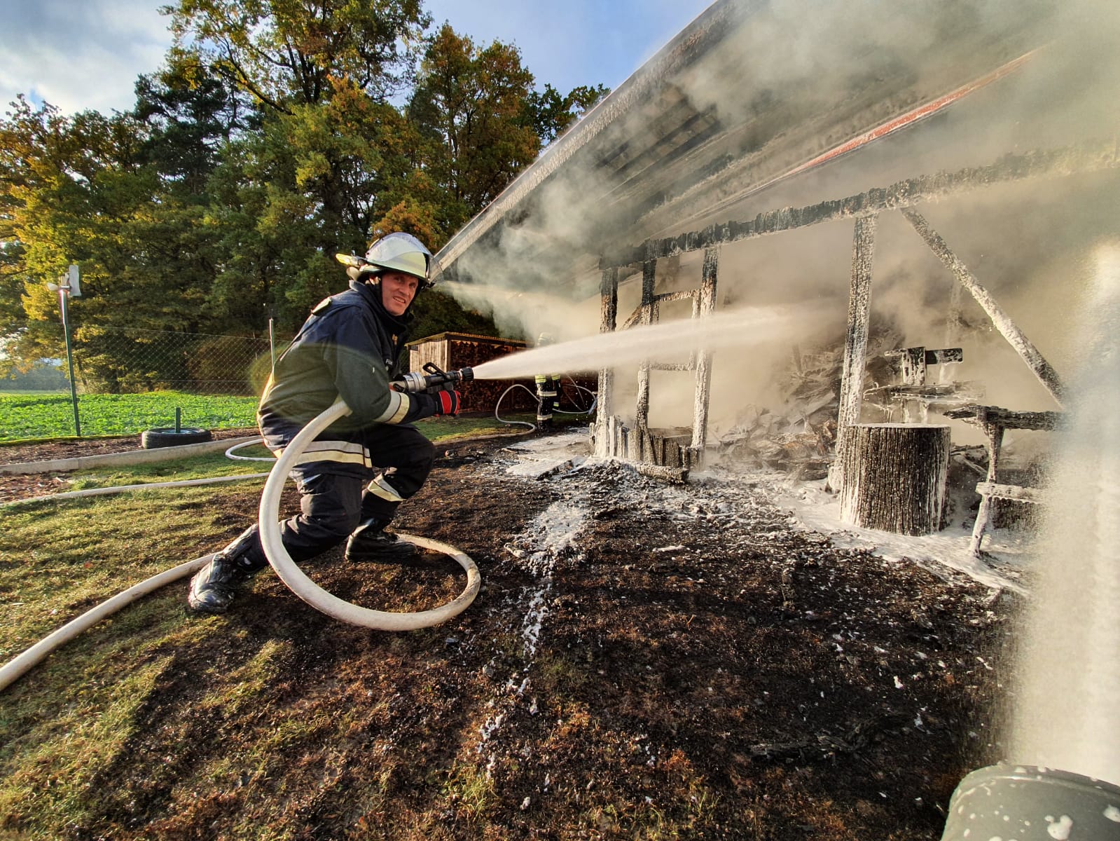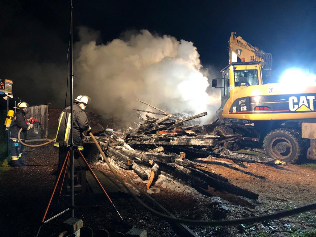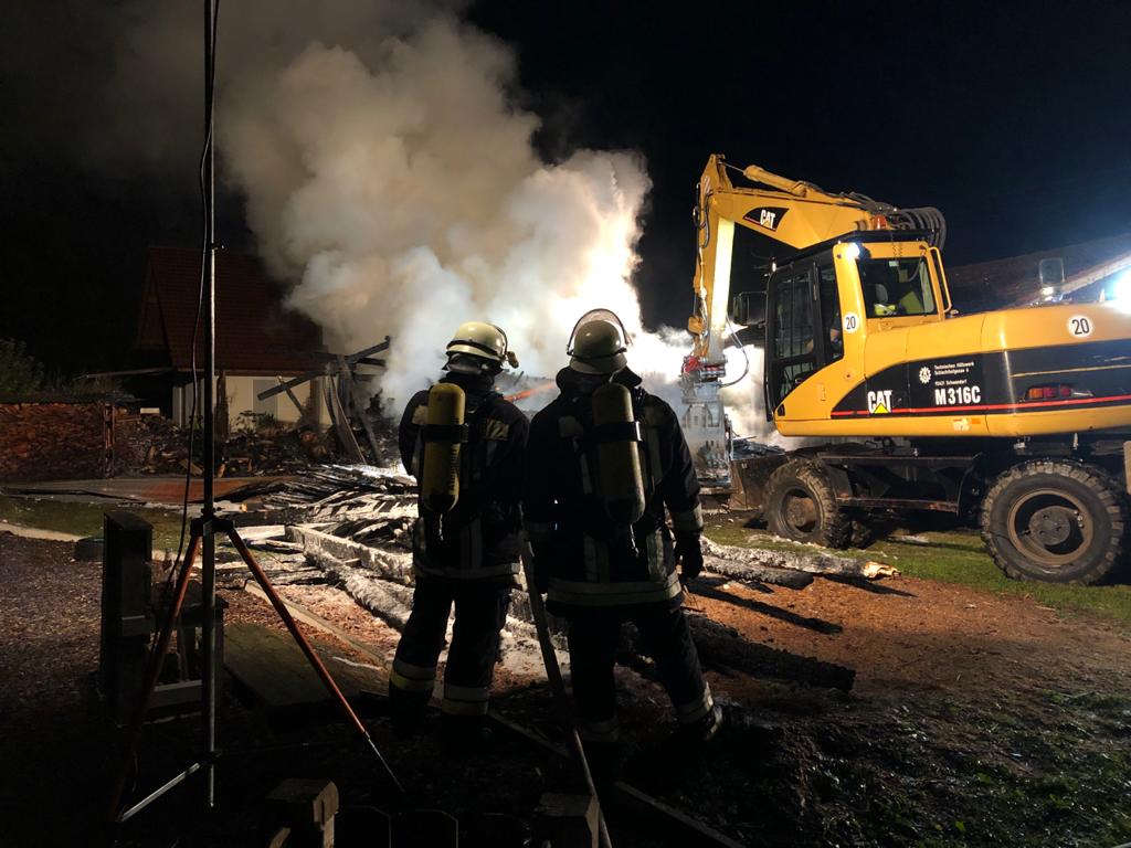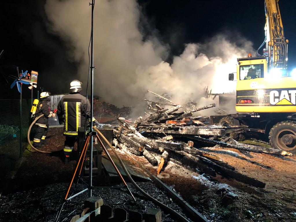 Sebastian Stadler schraubt gerade in seiner Motorradwerkstatt „seb’s bikeprojekt“ in Nittenau an einer Honda, als ihn die Integrierte Leitstelle am Dienstagnachmittag um kurz nach 15.30 Uhr zu einem Brand in seinem Heimatort alarmiert. Sofort lässt der Kommandant der FFW Bodenstein das Werkzeug fallen und eilt seinen Kameraden zur Hilfe. Bereits nach kurzer Zeit scheint das Feuer unter Kontrolle zu sein. Doch dann wird der Bodensteiner Kommandant von einer Nachricht überrascht. Es qualmt noch kräftig aus einem Schuppen auf einem Grundstück im Trumlinger Weg, als Sebastian Stadler davon erfährt, dass drei seiner sechs eingesetzten Kameraden wegen des Verdachts auf eine Rauchgasvergiftung vorsorglich ins Krankenhaus müssen. Notarzt Georg Dirrigl aus Bruck ist vor Ort, um sie zu untersuchen. Wenige Minuten zuvor hatte Kommandant Stadler der Mittelbayerischen noch stolz davon berichtet, dass der alte VW LT31 der Feuerwehr Bodenstein mit voller Mannstärke ausrücken konnte. Das ist für ihn keine Selbstverständlichkeit. Weil viele der Aktiven der FFW Bodenstein auswärts arbeiten würden, fehlen die Einsatzkräfte tagsüber bei Notfällen. Erster größerer Brand seit 15 Jahren Am Dienstagnachmittag sind sie aber zur Stelle. Die Bodensteiner Feuerwehrler treffen als erste Einsatzkräfte im Trumlinger Weg ein. Laut Stadler ist es der erste größere Brand seit 15 Jahren im Ort, der Einsatz daher „sehr ereignisreich“. „Man hat den Rauch schon von Nittenau gesehen“, sagt der Kommandant. Bei ihm selbst sei bei der Alarmierung der Puls ordentlich nach oben gegangen. Die Bodensteiner Feuerwehrler konzentrieren sich zunächst darauf, dass die Flammen nicht auf einen angrenzenden Schuppen übergreifen. „Da war das Feuer nur noch einen guten Meter entfernt“, berichtet Sebastian Stadler. Der Rauch wird aber immer stärker und zeigt den Feuerwehrlern ihre Grenzen auf. „Das Löschen war ohne Atemschutz nicht mehr möglich“, bilanziert Stadler. Die Feuerwehr Nittenau bringt mit ihrem Löschzug die wichtigen Atemschutzträger mit. Diese können ohne Gefahr zusammen mit den Bodensteinern und der Feuerwehr Bergham das Feuer unter Kontrolle bringen. Der Besitzer des Schuppens ist froh, dass niemand schwerer verletzt wird. Er sagt der Mittelbayerischen, dass er in der Gartenhütte Holz und Geräte gelagert hatte. „Ich war heute noch gar nicht im Schuppen hinten“, berichtet er. Er könne sich daher nicht erklären, warum dieser plötzlich zum Brennen anfing. „Wir wissen gar nicht, wie das passieren konnte. Mein Nachbar sagte, dass es vielleicht ein Kurzschluss war.“ Alten Porsche-Traktor gerettet Sein Nachbar war es auch, der das Feuer überhaupt bemerkte. „Der ist zu unserem Haus gelaufen, weil er von weitem schon den Rauch gesehen hatte. Er hat mich sofort aufgeweckt und dann sind wir raus“, schildert der Brandleiter. Neben Feuerwehr und Rettungsdienst eilt auch ein Fachberater des Technischen Hilfswerks (THW) an die Einsatzstelle. Auch eine Streife der Polizeistation Nittenau ist vor Ort. Die Beamten sprechen gegenüber der Mittelbayerischen von einer „unklaren Brandursache“. Text: Martin Kellermeier (Mittelbayerische Zeitung) |