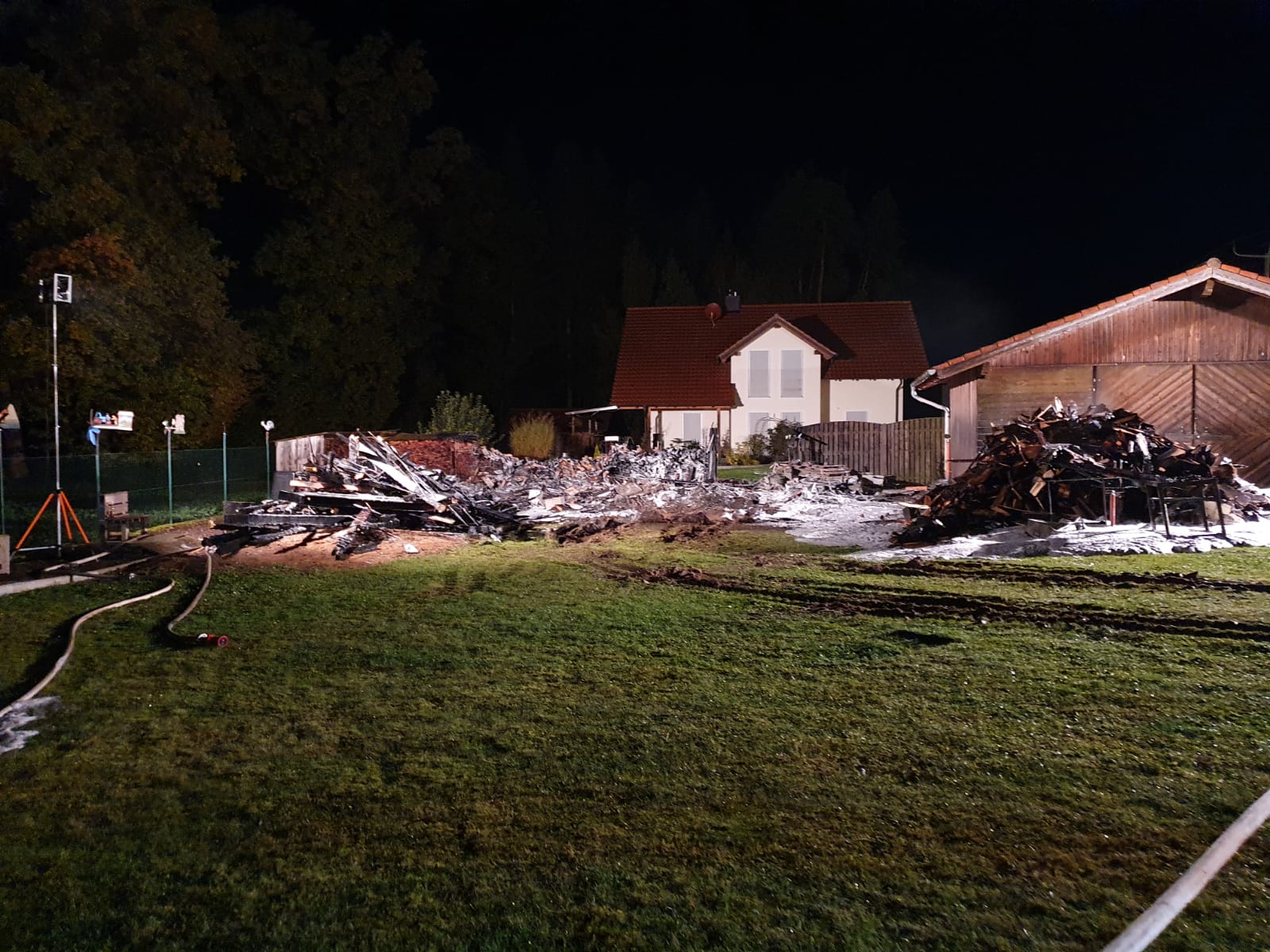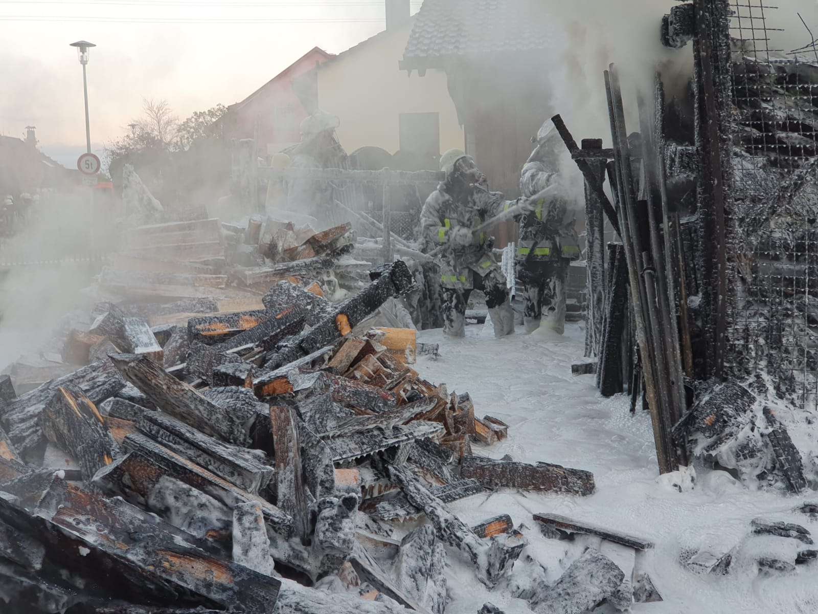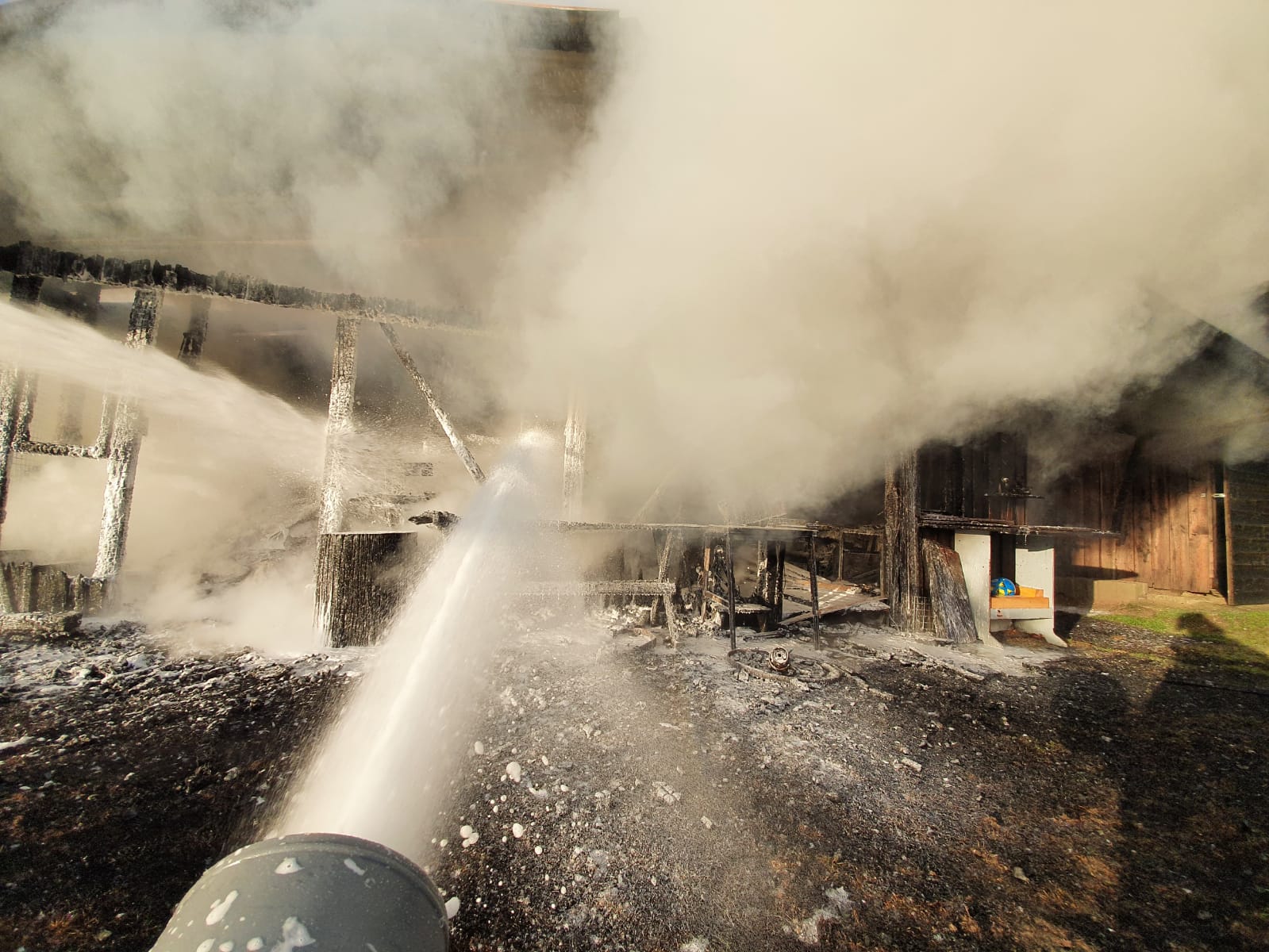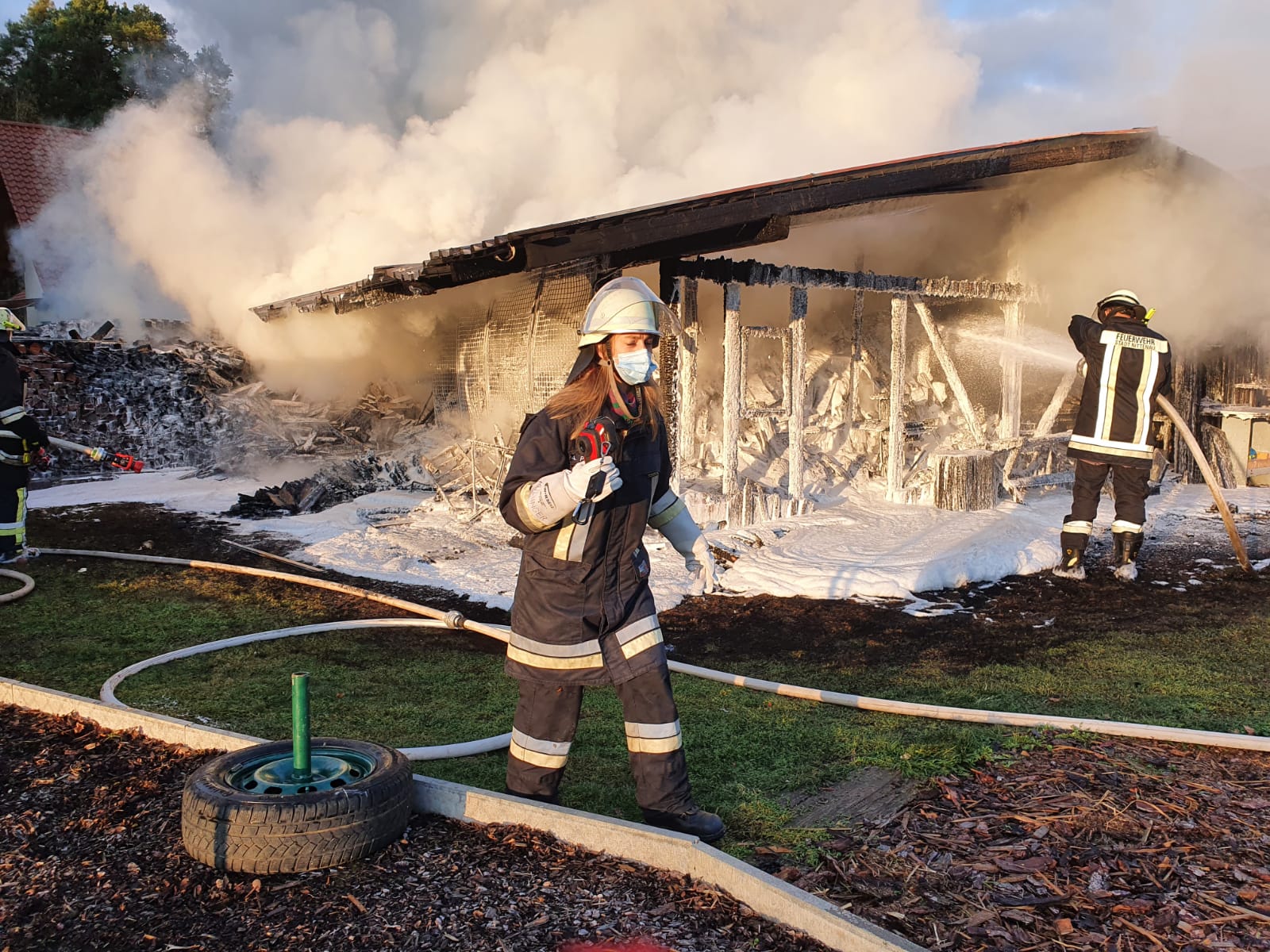 Sebastian Stadler schraubt gerade in seiner Motorradwerkstatt „seb’s bikeprojekt“ in Nittenau an einer Honda, als ihn die Integrierte Leitstelle am Dienstagnachmittag um kurz nach 15.30 Uhr zu einem Brand in seinem Heimatort alarmiert. Sofort lässt der Kommandant der FFW Bodenstein das Werkzeug fallen und eilt seinen Kameraden zur Hilfe. Bereits nach kurzer Zeit scheint das Feuer unter Kontrolle zu sein. Doch dann wird der Bodensteiner Kommandant von einer Nachricht überrascht. Es qualmt noch kräftig aus einem Schuppen auf einem Grundstück im Trumlinger Weg, als Sebastian Stadler davon erfährt, dass drei seiner sechs eingesetzten Kameraden wegen des Verdachts auf eine Rauchgasvergiftung vorsorglich ins Krankenhaus müssen. Notarzt Georg Dirrigl aus Bruck ist vor Ort, um sie zu untersuchen. Wenige Minuten zuvor hatte Kommandant Stadler der Mittelbayerischen noch stolz davon berichtet, dass der alte VW LT31 der Feuerwehr Bodenstein mit voller Mannstärke ausrücken konnte. Das ist für ihn keine Selbstverständlichkeit. Weil viele der Aktiven der FFW Bodenstein auswärts arbeiten würden, fehlen die Einsatzkräfte tagsüber bei Notfällen. Erster größerer Brand seit 15 Jahren Am Dienstagnachmittag sind sie aber zur Stelle. Die Bodensteiner Feuerwehrler treffen als erste Einsatzkräfte im Trumlinger Weg ein. Laut Stadler ist es der erste größere Brand seit 15 Jahren im Ort, der Einsatz daher „sehr ereignisreich“. „Man hat den Rauch schon von Nittenau gesehen“, sagt der Kommandant. Bei ihm selbst sei bei der Alarmierung der Puls ordentlich nach oben gegangen. Die Bodensteiner Feuerwehrler konzentrieren sich zunächst darauf, dass die Flammen nicht auf einen angrenzenden Schuppen übergreifen. „Da war das Feuer nur noch einen guten Meter entfernt“, berichtet Sebastian Stadler. Der Rauch wird aber immer stärker und zeigt den Feuerwehrlern ihre Grenzen auf. „Das Löschen war ohne Atemschutz nicht mehr möglich“, bilanziert Stadler. Die Feuerwehr Nittenau bringt mit ihrem Löschzug die wichtigen Atemschutzträger mit. Diese können ohne Gefahr zusammen mit den Bodensteinern und der Feuerwehr Bergham das Feuer unter Kontrolle bringen. Der Besitzer des Schuppens ist froh, dass niemand schwerer verletzt wird. Er sagt der Mittelbayerischen, dass er in der Gartenhütte Holz und Geräte gelagert hatte. „Ich war heute noch gar nicht im Schuppen hinten“, berichtet er. Er könne sich daher nicht erklären, warum dieser plötzlich zum Brennen anfing. „Wir wissen gar nicht, wie das passieren konnte. Mein Nachbar sagte, dass es vielleicht ein Kurzschluss war.“ Alten Porsche-Traktor gerettet Sein Nachbar war es auch, der das Feuer überhaupt bemerkte. „Der ist zu unserem Haus gelaufen, weil er von weitem schon den Rauch gesehen hatte. Er hat mich sofort aufgeweckt und dann sind wir raus“, schildert der Brandleiter. Neben Feuerwehr und Rettungsdienst eilt auch ein Fachberater des Technischen Hilfswerks (THW) an die Einsatzstelle. Auch eine Streife der Polizeistation Nittenau ist vor Ort. Die Beamten sprechen gegenüber der Mittelbayerischen von einer „unklaren Brandursache“. Text: Martin Kellermeier (Mittelbayerische Zeitung) |