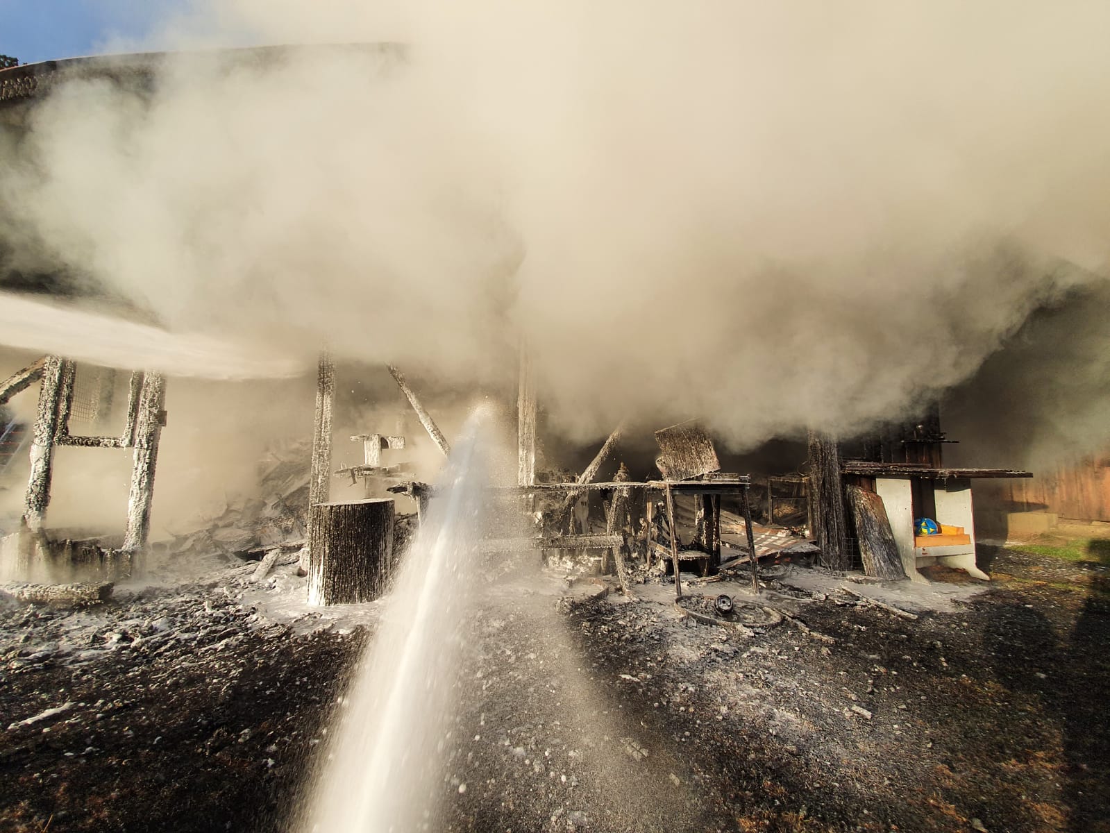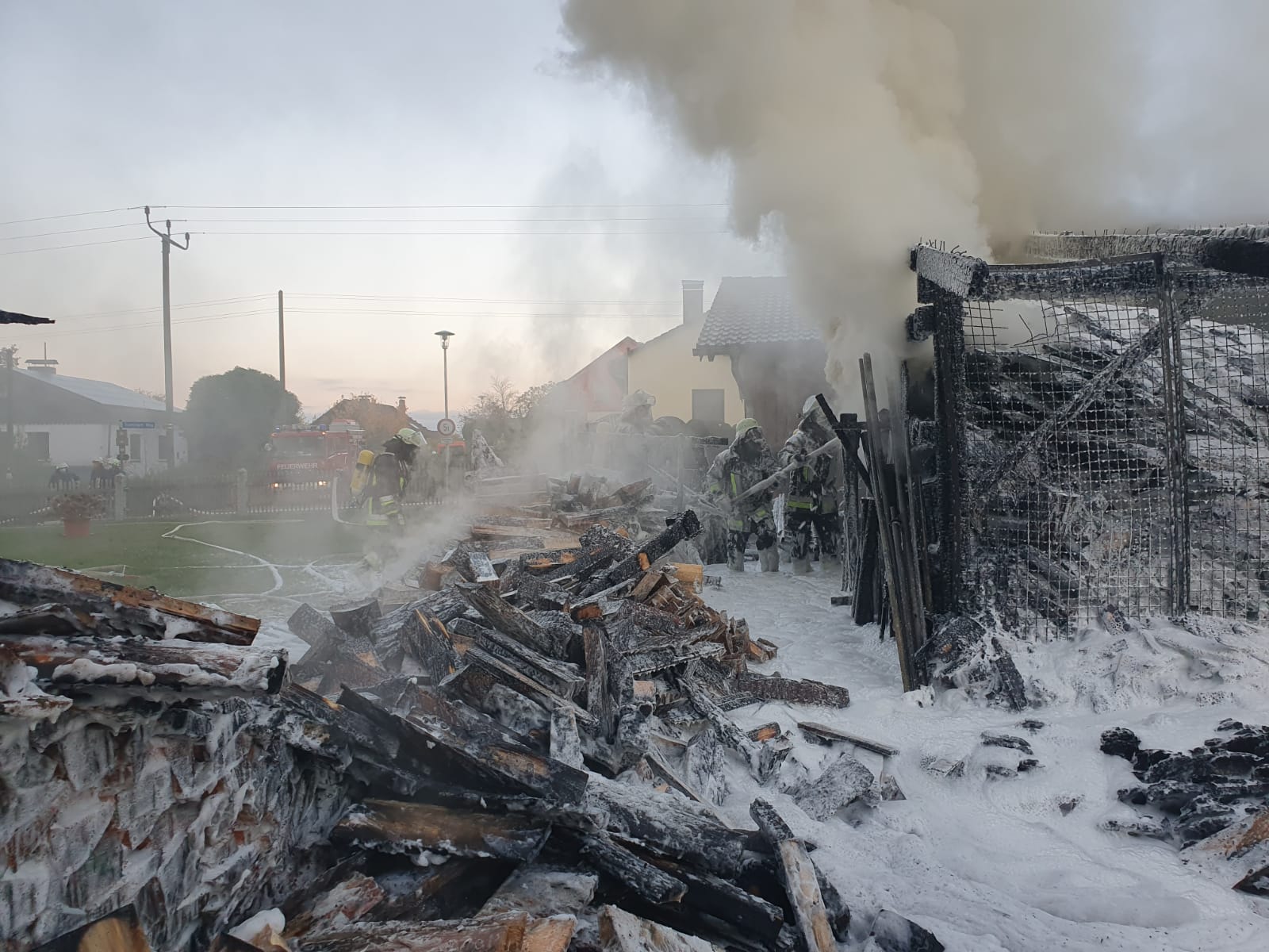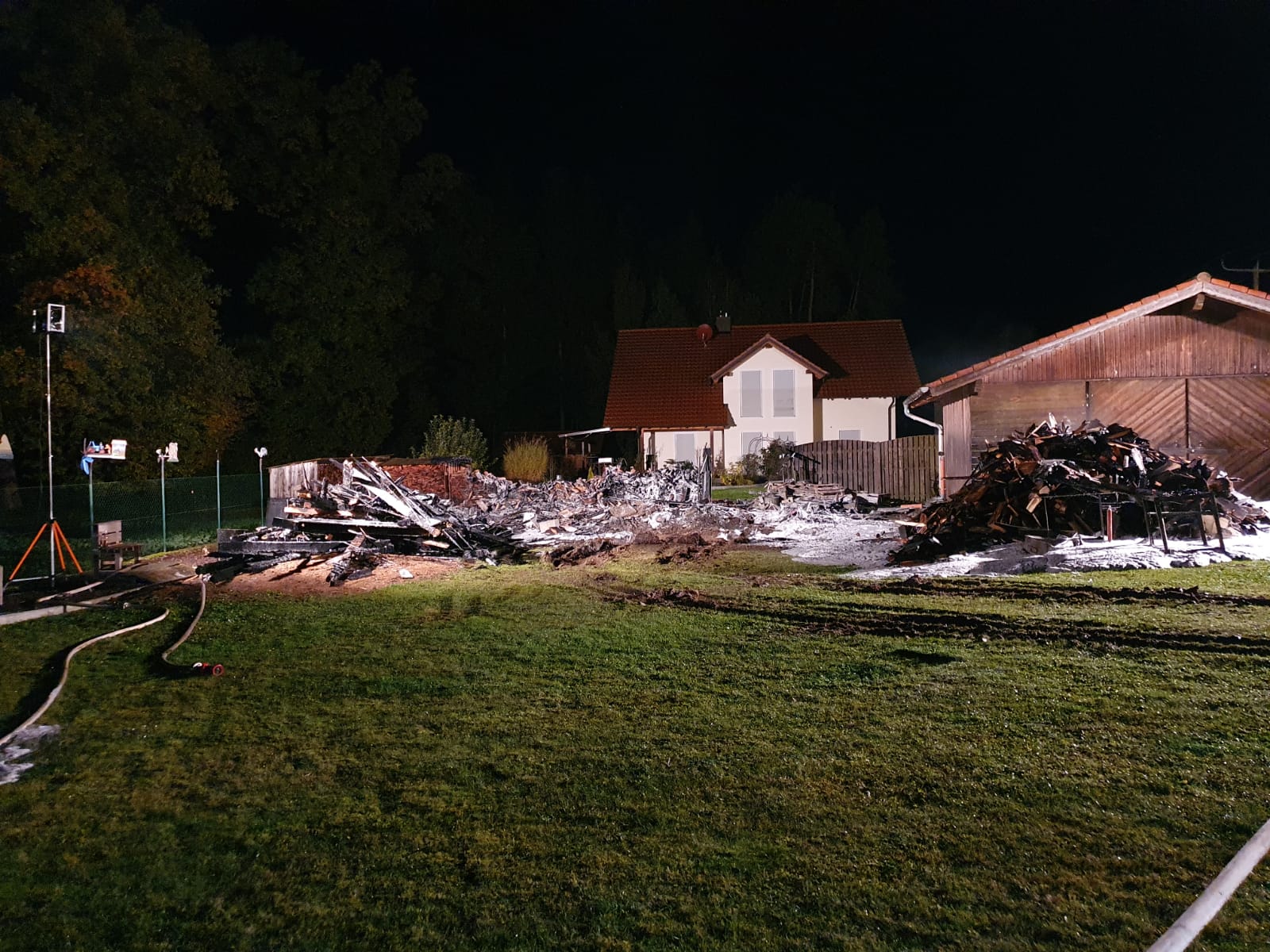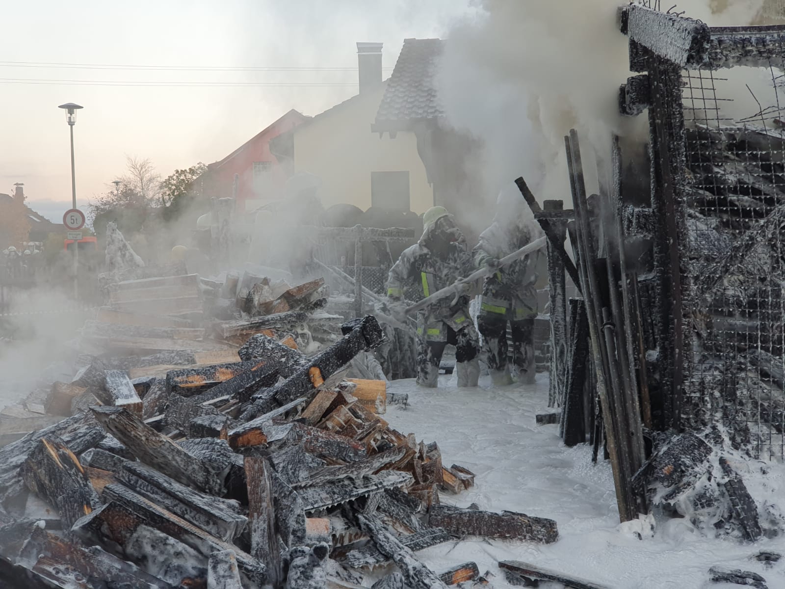 Sebastian Stadler schraubt gerade in seiner Motorradwerkstatt „seb’s bikeprojekt“ in Nittenau an einer Honda, als ihn die Integrierte Leitstelle am Dienstagnachmittag um kurz nach 15.30 Uhr zu einem Brand in seinem Heimatort alarmiert. Sofort lässt der Kommandant der FFW Bodenstein das Werkzeug fallen und eilt seinen Kameraden zur Hilfe. Bereits nach kurzer Zeit scheint das Feuer unter Kontrolle zu sein. Doch dann wird der Bodensteiner Kommandant von einer Nachricht überrascht. Es qualmt noch kräftig aus einem Schuppen auf einem Grundstück im Trumlinger Weg, als Sebastian Stadler davon erfährt, dass drei seiner sechs eingesetzten Kameraden wegen des Verdachts auf eine Rauchgasvergiftung vorsorglich ins Krankenhaus müssen. Notarzt Georg Dirrigl aus Bruck ist vor Ort, um sie zu untersuchen. Wenige Minuten zuvor hatte Kommandant Stadler der Mittelbayerischen noch stolz davon berichtet, dass der alte VW LT31 der Feuerwehr Bodenstein mit voller Mannstärke ausrücken konnte. Das ist für ihn keine Selbstverständlichkeit. Weil viele der Aktiven der FFW Bodenstein auswärts arbeiten würden, fehlen die Einsatzkräfte tagsüber bei Notfällen. Erster größerer Brand seit 15 Jahren Am Dienstagnachmittag sind sie aber zur Stelle. Die Bodensteiner Feuerwehrler treffen als erste Einsatzkräfte im Trumlinger Weg ein. Laut Stadler ist es der erste größere Brand seit 15 Jahren im Ort, der Einsatz daher „sehr ereignisreich“. „Man hat den Rauch schon von Nittenau gesehen“, sagt der Kommandant. Bei ihm selbst sei bei der Alarmierung der Puls ordentlich nach oben gegangen. Die Bodensteiner Feuerwehrler konzentrieren sich zunächst darauf, dass die Flammen nicht auf einen angrenzenden Schuppen übergreifen. „Da war das Feuer nur noch einen guten Meter entfernt“, berichtet Sebastian Stadler. Der Rauch wird aber immer stärker und zeigt den Feuerwehrlern ihre Grenzen auf. „Das Löschen war ohne Atemschutz nicht mehr möglich“, bilanziert Stadler. Die Feuerwehr Nittenau bringt mit ihrem Löschzug die wichtigen Atemschutzträger mit. Diese können ohne Gefahr zusammen mit den Bodensteinern und der Feuerwehr Bergham das Feuer unter Kontrolle bringen. Der Besitzer des Schuppens ist froh, dass niemand schwerer verletzt wird. Er sagt der Mittelbayerischen, dass er in der Gartenhütte Holz und Geräte gelagert hatte. „Ich war heute noch gar nicht im Schuppen hinten“, berichtet er. Er könne sich daher nicht erklären, warum dieser plötzlich zum Brennen anfing. „Wir wissen gar nicht, wie das passieren konnte. Mein Nachbar sagte, dass es vielleicht ein Kurzschluss war.“ Alten Porsche-Traktor gerettet Sein Nachbar war es auch, der das Feuer überhaupt bemerkte. „Der ist zu unserem Haus gelaufen, weil er von weitem schon den Rauch gesehen hatte. Er hat mich sofort aufgeweckt und dann sind wir raus“, schildert der Brandleiter. Neben Feuerwehr und Rettungsdienst eilt auch ein Fachberater des Technischen Hilfswerks (THW) an die Einsatzstelle. Auch eine Streife der Polizeistation Nittenau ist vor Ort. Die Beamten sprechen gegenüber der Mittelbayerischen von einer „unklaren Brandursache“. Text: Martin Kellermeier (Mittelbayerische Zeitung) |