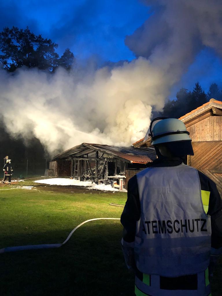 Ein brennender Schuppen in Bodenstein bei Nittenau sorgt für starke Rauchentwicklung.