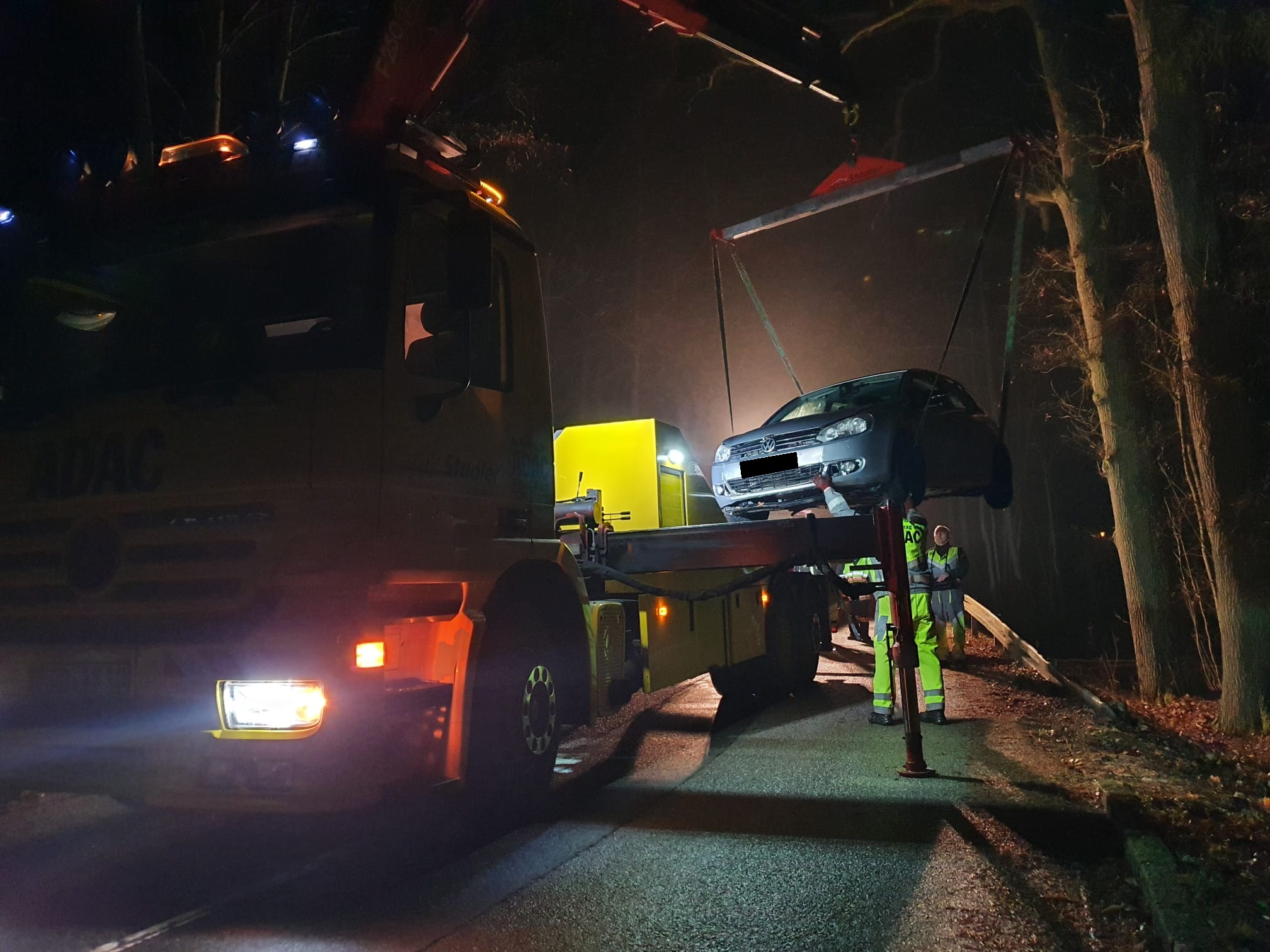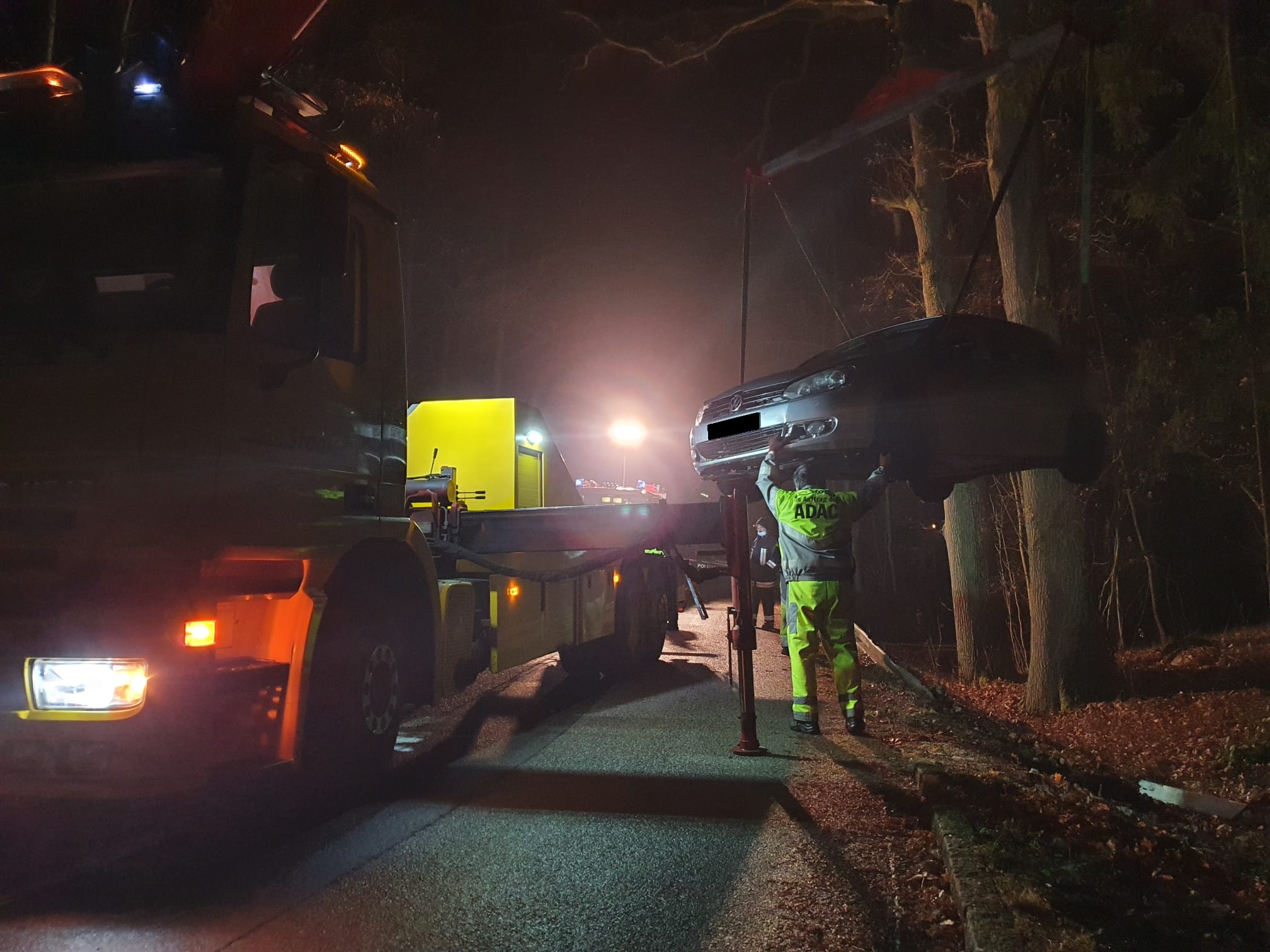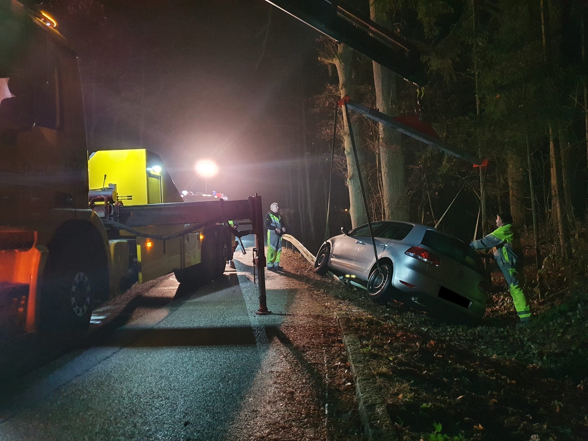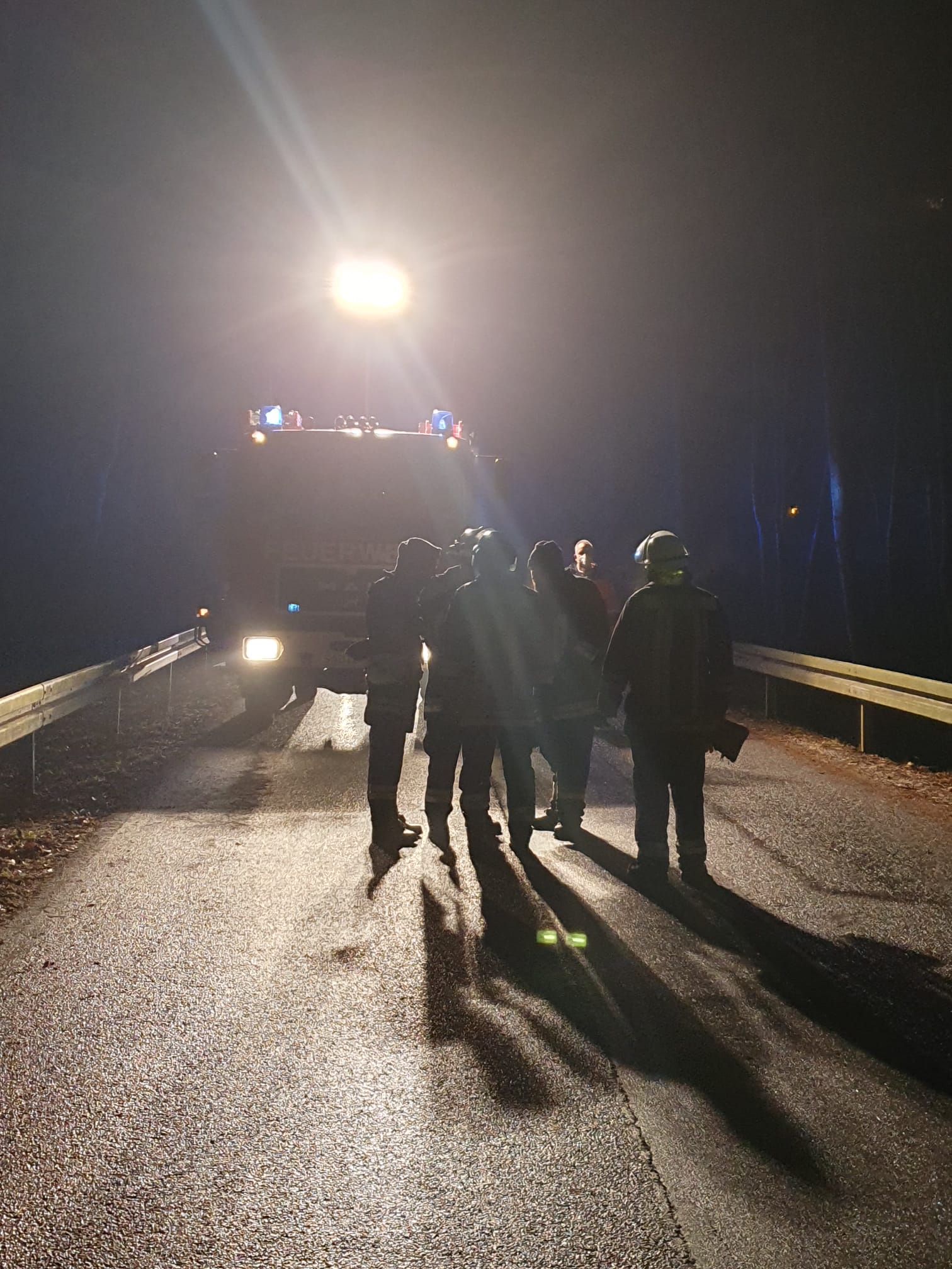 Um 19:43 Uhr ging die Meldung über einen Verkehrsunfall mit eingeklemmter Person ein. Aufgrund des Einsatzstichwortes wurden die Feuerwehren aus Bodenstein, Nittenau, Bergham und Reichenbach alarmiert. Aufgrund der Nähe des Unfalls zum Wohnhaus des Kommandanten Sebastian Stadler, wurde er bereits vor der Alarmierung auf das Geschehnis aufmerksam und eilte zur Unfallstelle. Da sich der Einsatz glücklicherweise als PKW Unfall ohne eingeklemmte Person herausstellte, konnten die FF Bergham und Reichenbach in der Anfahrt abbestellt werden. Die Einsatzstelle wurde ausgeleuchtet und während der Bergung des Fahrzeugs abgesichert. Erfreulicherweise war das Bodensteiner Auto wieder mit 6 Mann besetzt. Danke an alle Kameraden, welche am Einsatz teilgenommen haben für die reibungslose Zusammenarbeit.
