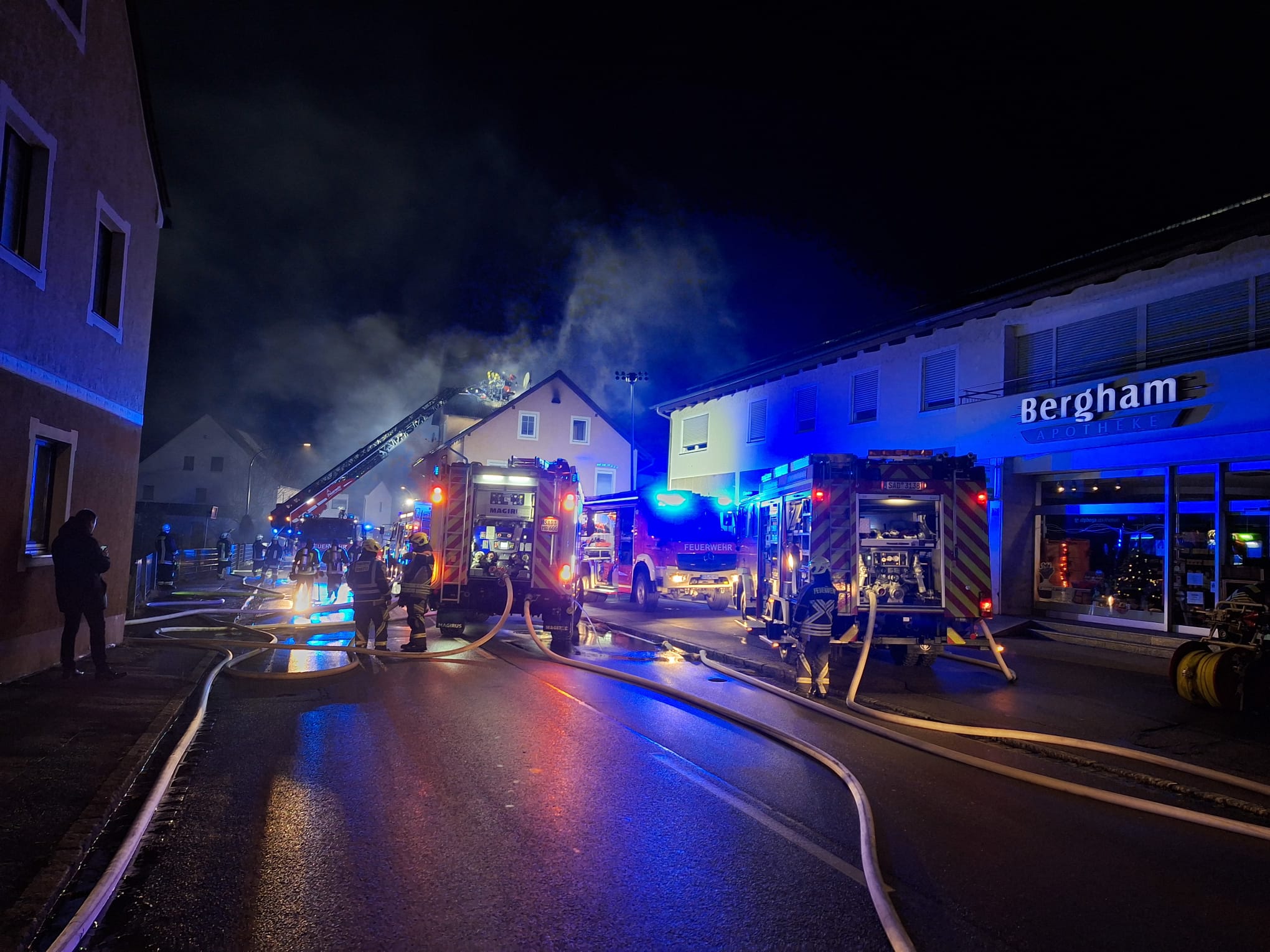Nachdem die Feuerwehren Stadt Nittenau, Bergham, Bruck i. d. Oberpfalz in die Berghamerstr. in Nittenau zu einem Brand B3 mit Personen gerufen wurden, wurde die Alarmstufe schnell auf B4 Brand Mehrfamilienhaus erhöht und die Nachalarmierung gestartet. Im Zuge dieser wurden wir sowie die Feuerwehren Steinberg am See, Bodenwöhr, Hof am Regen, Neuhaus, Kaspeltshub, Reichenbach, Walderbach, Stadt Roding, die Kreisbrandinspektion Landkreis Schwandorf und das THW Schwandorf alarmiert. Während über die Drehleitern der Brand von oben und durch diverse Atemschutztrupps der Brand im Inneren bekämpft wurde, stellten wir die Wasserversorgung aus dem nahegelegenen Regen sicher. Zwei Personen konnten über die Drehleiter und zwei weitere durch die Atemschutztrupps gerettet werden, wobei diese wegen einer Rauchvergiftung behandelt werden mussten. Nach gut 3 Stunden war der Brand gelöscht und die ersten Kräfte konnten abrücken, allerdings dauerte die Brandwache und die Bekämpfung einzelner Glutnester noch bis in die frühen Morgenstunden an.
