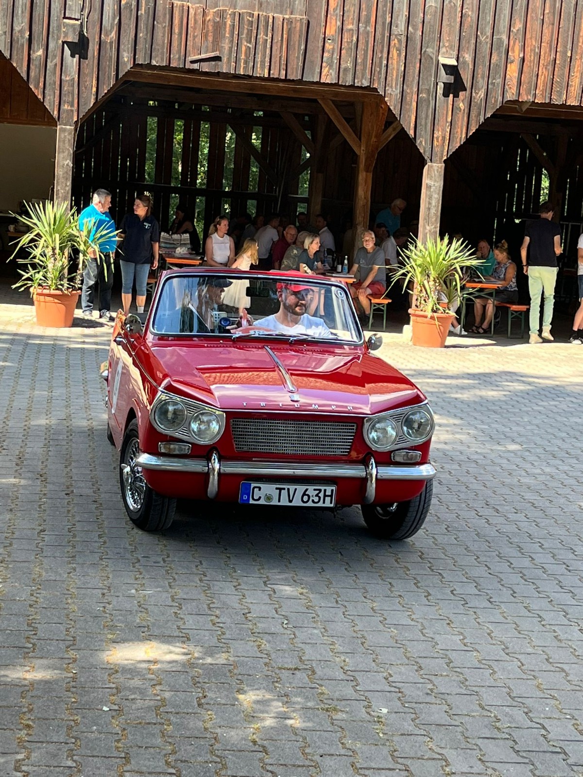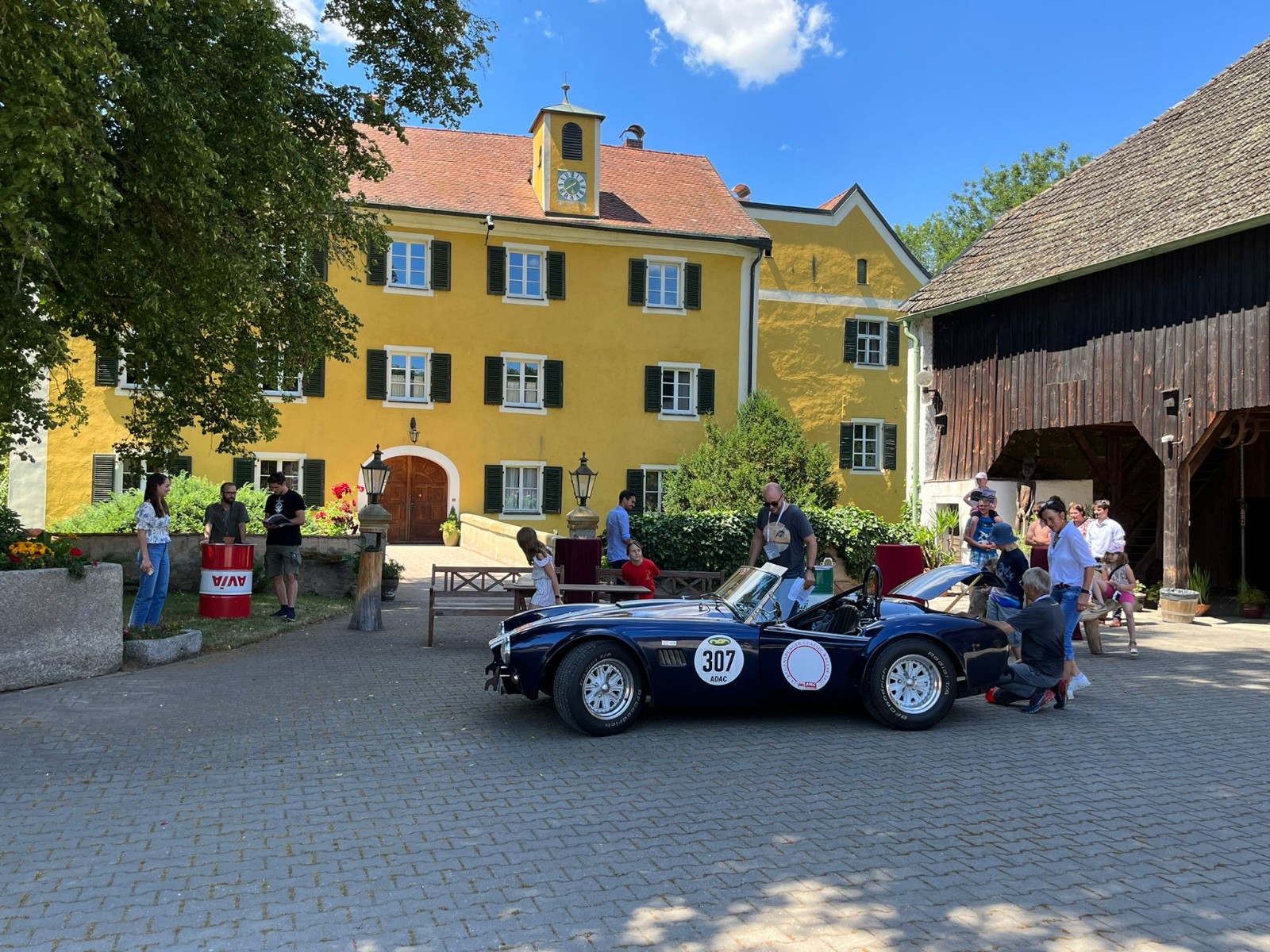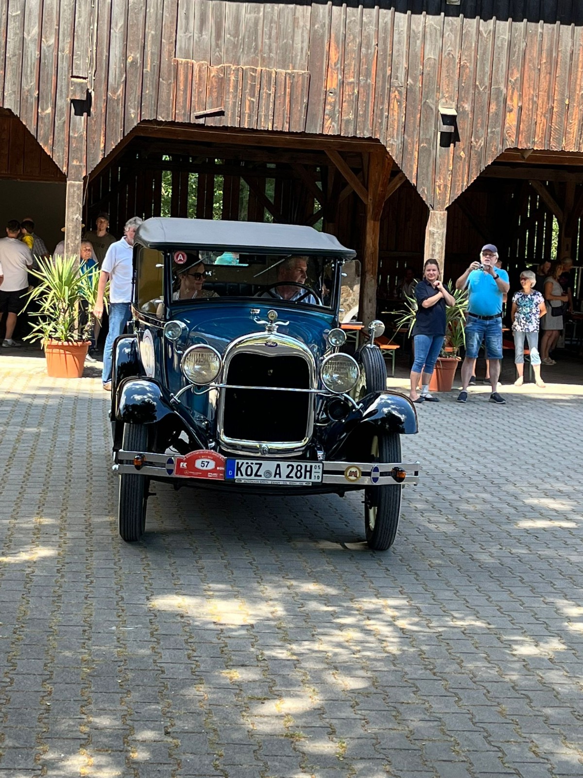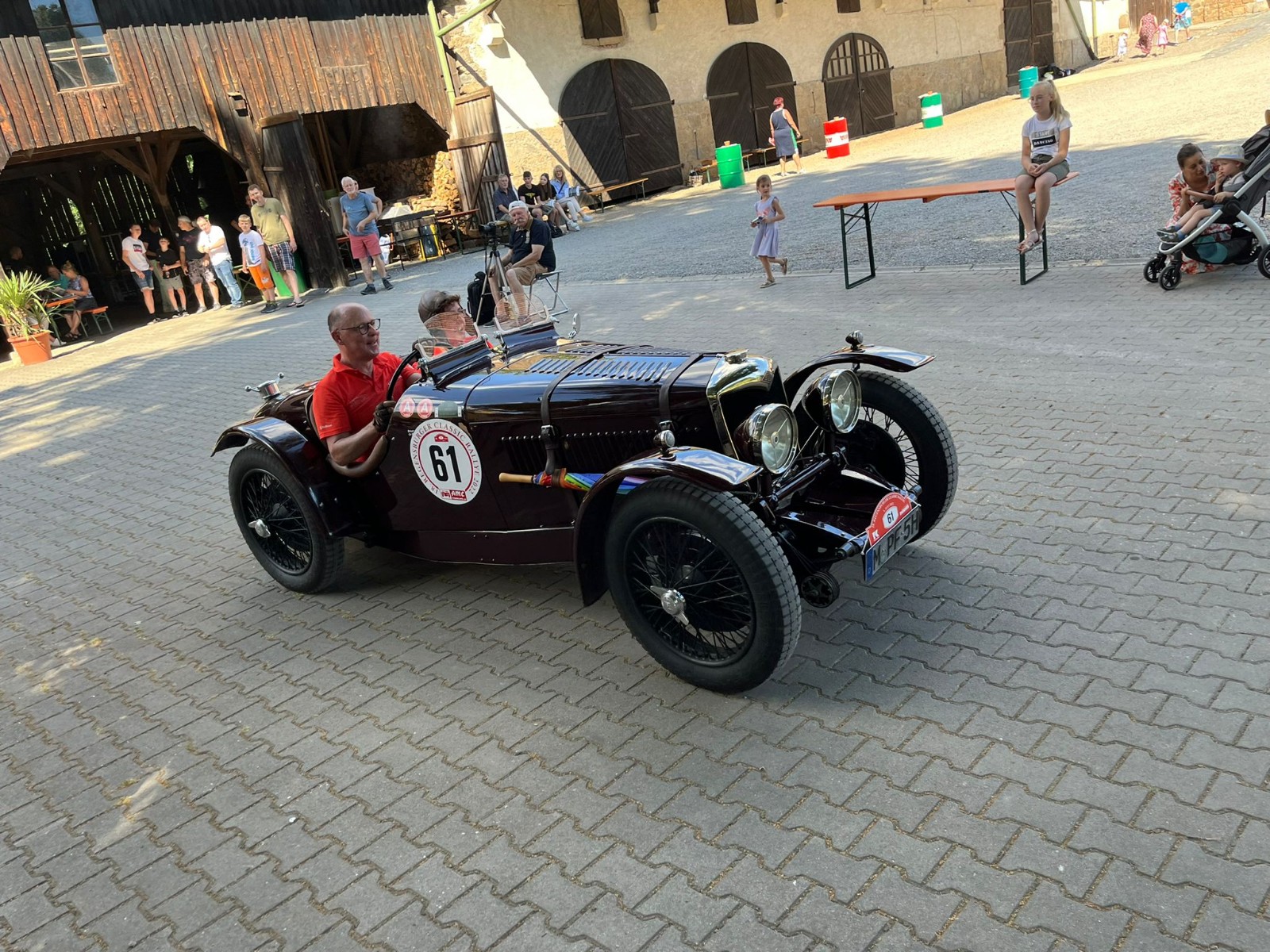 Gut 130 Oldtimerfahrzeuge waren am Start. Gegen 14:30 Uhr erschien das erste Fahrzeug im Hofe von Gabi Horsch, gegen 16:30 Uhr verließ das letzte Auto den Schlosshof.