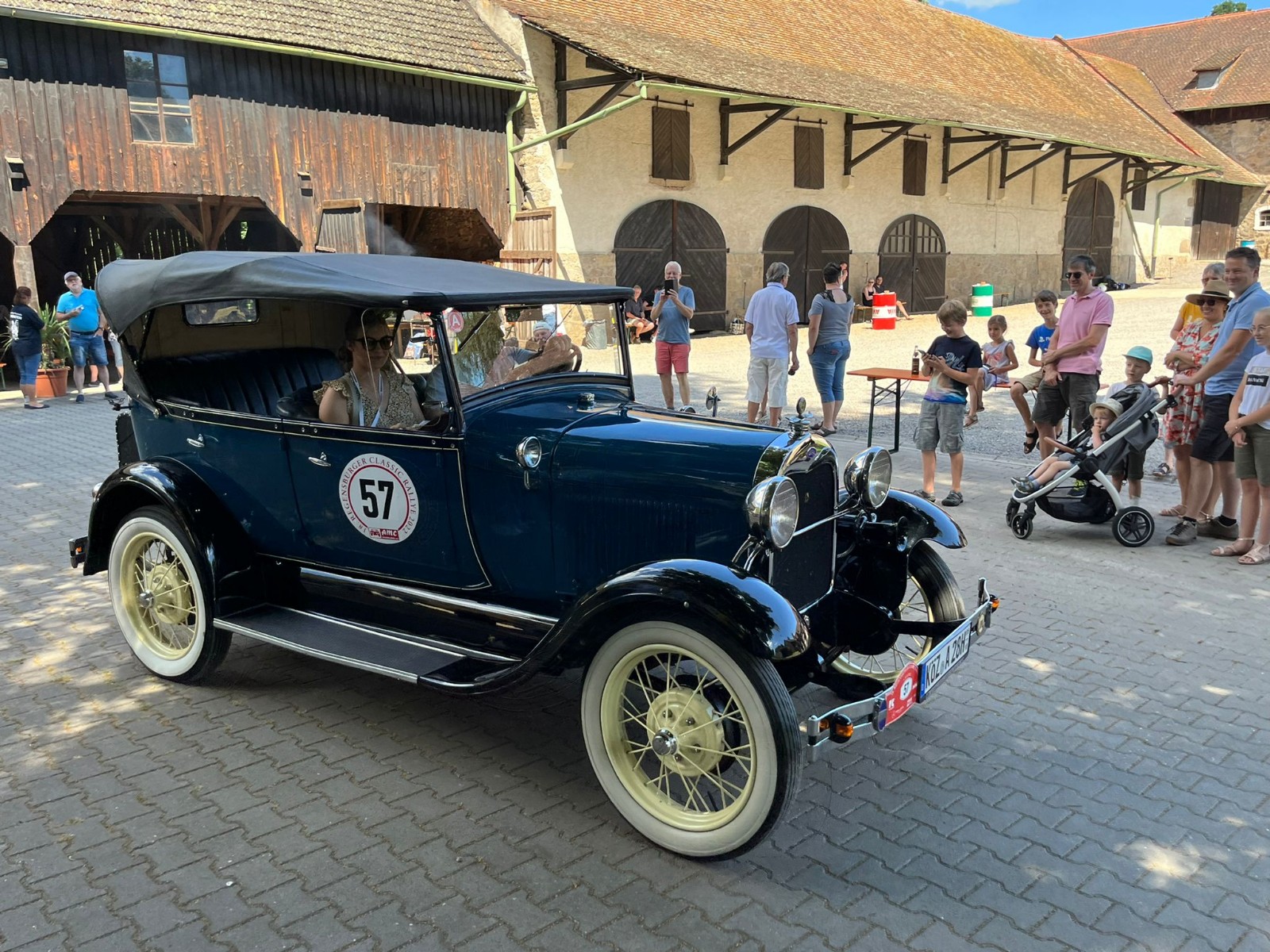 Gabi Horsch, Besitzerin des Gutshofes in Bodenstein, hatte bei der Veranstaltungsleitung erreicht, dass in ihrem Anwesen ein Zwischenstopp stattfand. Unterstützung für ihr Vorhaben kam von der Freiwilligen Feuerwehr Bodenstein. Sie sorgte bei den Oldtimer-Fans für das leibliche Wohl. Durch die Stopps hatten die Zuschauer Gelegenheit, diese hochpolierten betagten Benzinkutschen einmal näher zu betrachten. Einige der Rally-Fahrer ließen mit Kavalierstarts durchblicken, mit wie vielen Pferdestärken ihre Autos ausgestattet waren.