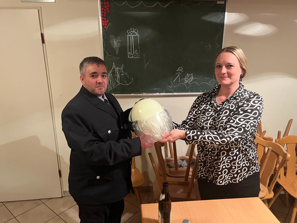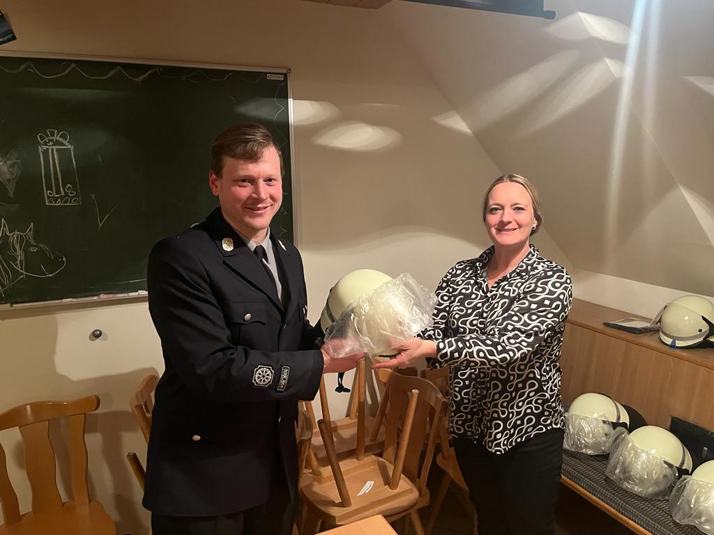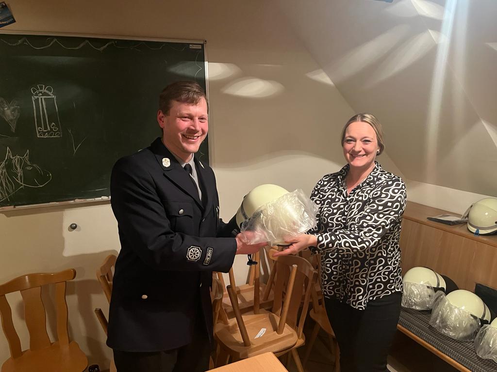 Anschließend nutzte die stellvertretende Vorständin Sonja Zierer die Gelegenheit und übergab allen Anwesenden aktiven Mitgliedern die neuen Einsatzhelme. Somit ist ein weiterer Schritt zur Vorbereitung auf das neue Einsatzfahrzeug vollzogen.