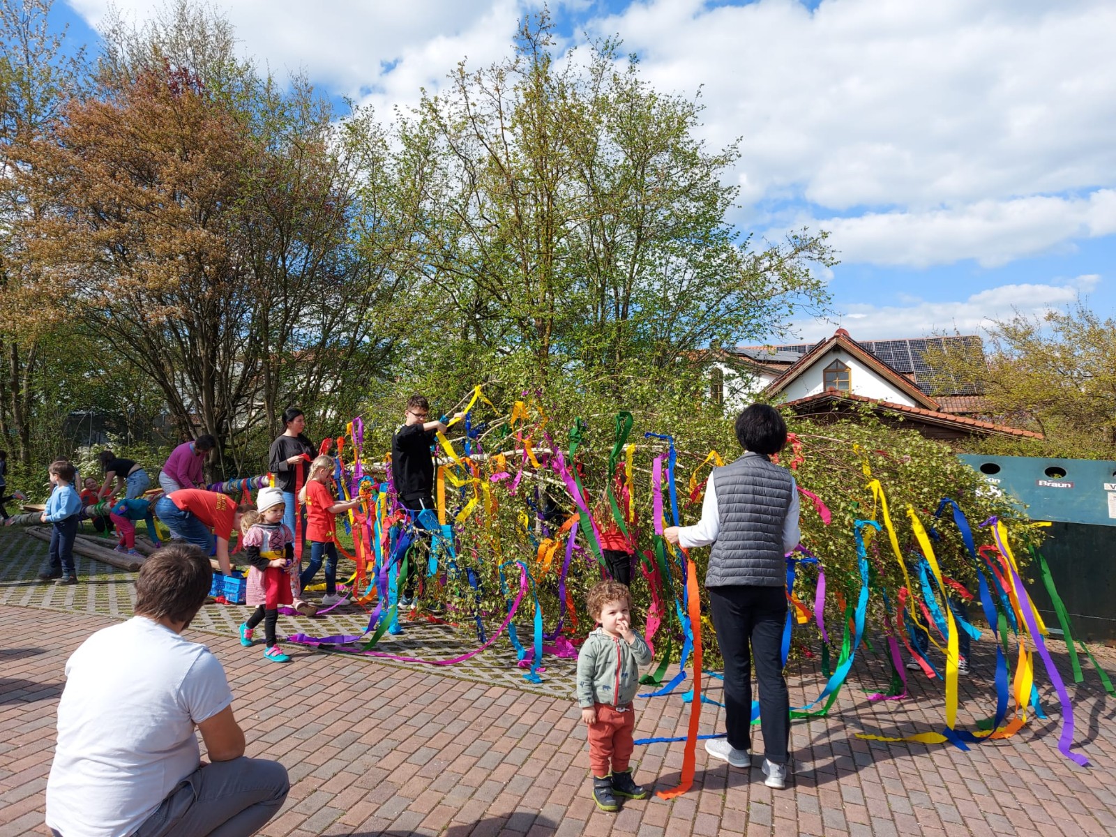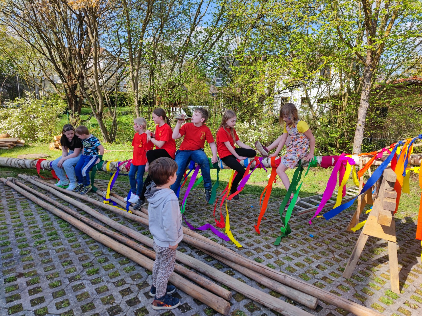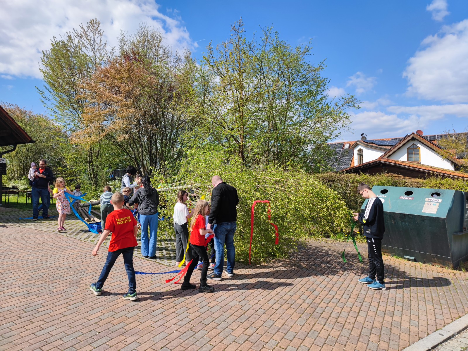 In diesem Jahr wurde die ca. 15 m hohe Birke von Gabi Horsch gespendet. Unter der Begleitung des gut besetzten Feuerwehrautos transportierte Robert Stettner den Baum unbeschadet zum Spritzenhaus. Dort angekommen wurde er von der Festgemeinde empfangen und von der Dorfjugend komplett mit bunten Bändern geschmückt. Unter dem routinierten Kommando von Gerhard Bauer wurde der Maibaum von zahlreichen kräftigen Händen zügig aufgestellt und anschließend vom Vorstand Robert Stettner und Kommandant Sebastian Stadler verkeilt. Auch in diesem Jahr wurde mit Kuchen, Grillfleisch und diversen Kaltgetränken für das leibliche Wohl gesorgt. Für die jüngeren Teilnehmer wurde zudem noch ein Kinderschminken auf die Beine gestellt, welches regen Anklang fand.
