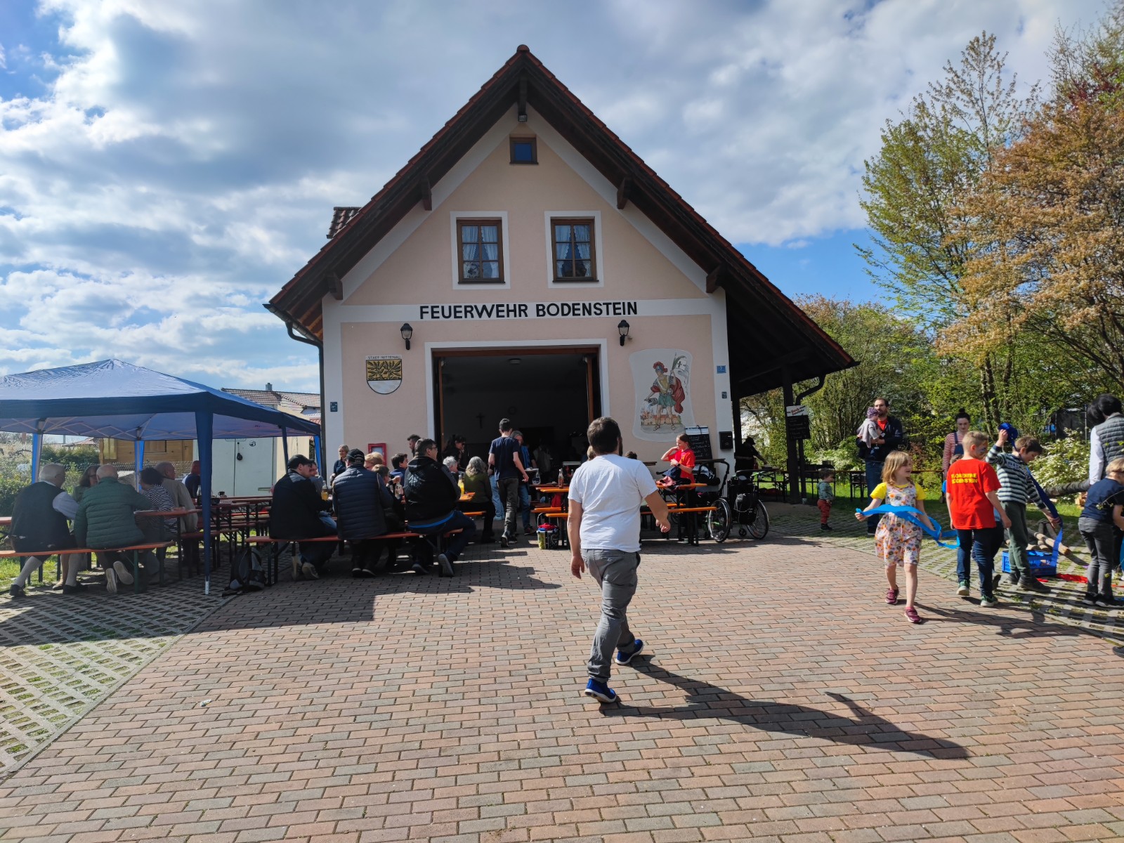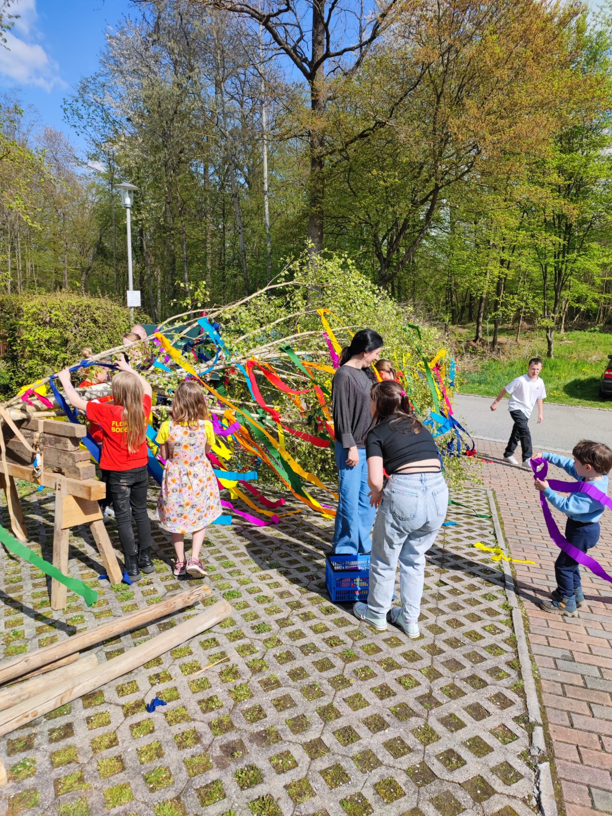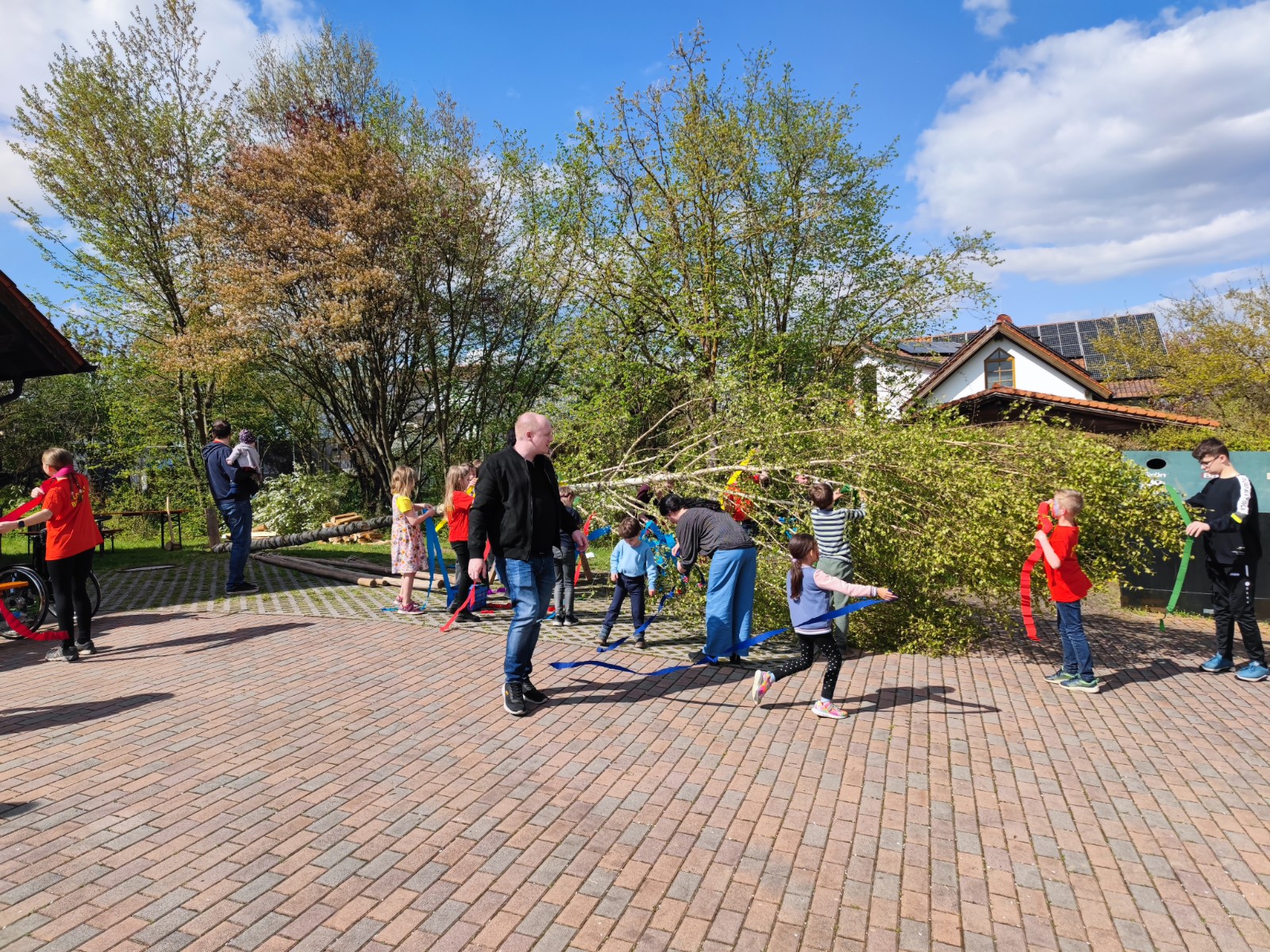 In diesem Jahr wurde die ca. 15 m hohe Birke von Gabi Horsch gespendet. Unter der Begleitung des gut besetzten Feuerwehrautos transportierte Robert Stettner den Baum unbeschadet zum Spritzenhaus. Dort angekommen wurde er von der Festgemeinde empfangen und von der Dorfjugend komplett mit bunten Bändern geschmückt. Unter dem routinierten Kommando von Gerhard Bauer wurde der Maibaum von zahlreichen kräftigen Händen zügig aufgestellt und anschließend vom Vorstand Robert Stettner und Kommandant Sebastian Stadler verkeilt. Auch in diesem Jahr wurde mit Kuchen, Grillfleisch und diversen Kaltgetränken für das leibliche Wohl gesorgt. Für die jüngeren Teilnehmer wurde zudem noch ein Kinderschminken auf die Beine gestellt, welches regen Anklang fand.