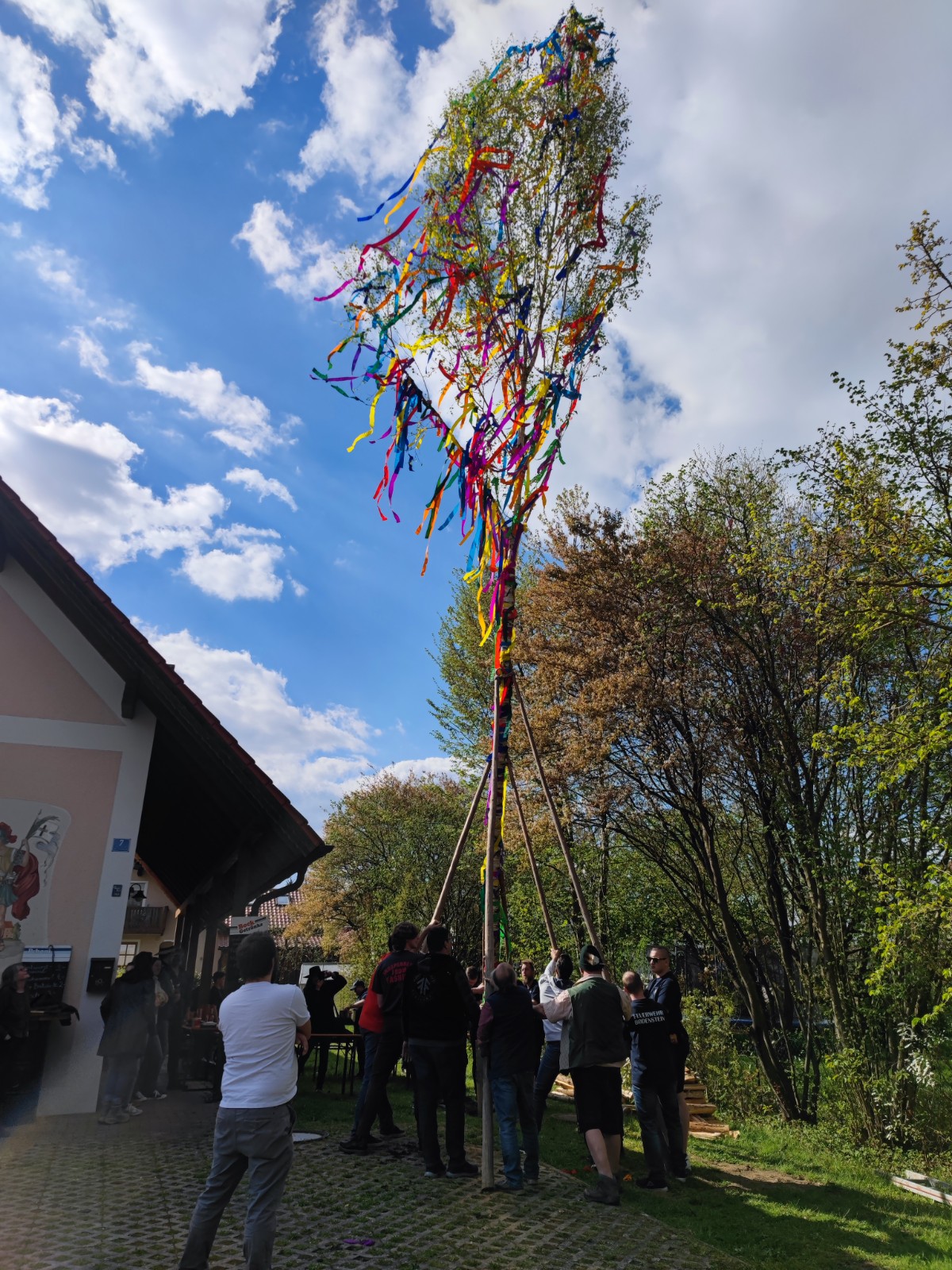 Obwohl aufgrund des gerade stattfindenden Aufbaus des neuen Feuerwehrautos und der Planung für das große Sommernachtsfest inklusive Fahrzeugweihe die Verantwortlichen bereits stark eingespannt sind, wurde sich dennoch dazu entschieden die wiederbelebt Tradition des Maibaumaufstellens auch dieses Jahr fortzuführen.